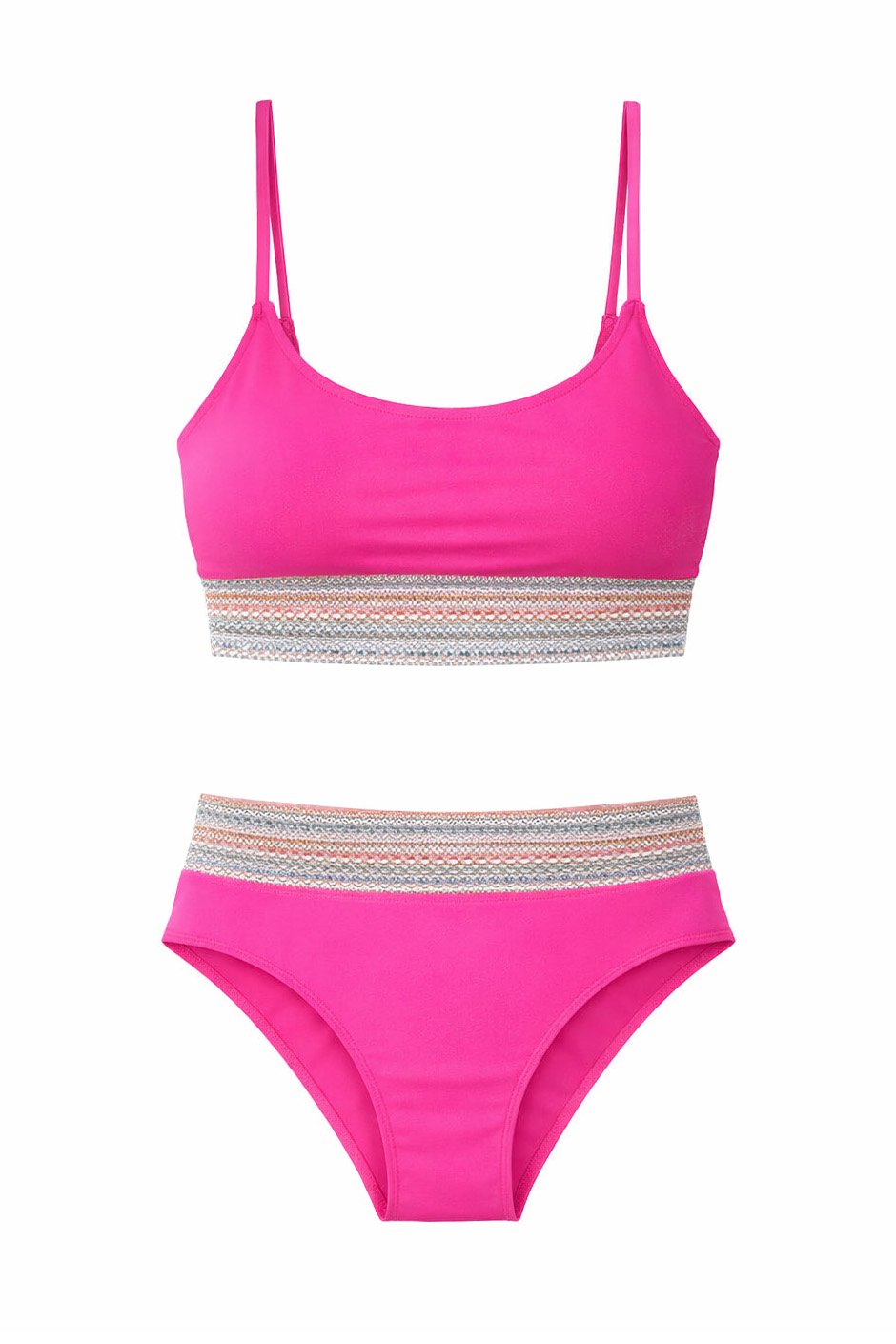Turn up the color in the Bright Tide Bikini Set! This two-piece features a bold bright pink design with cute patterned elastic details for a fun, flirty finish. Perfect for beach days, pool lounging, and soaking up every bit of sunshine.