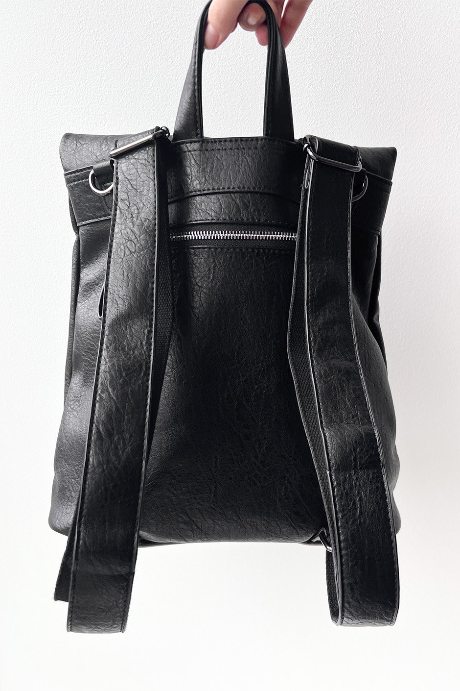 The Journey Backpack is a chic essential for life on the go. Made from pebbled vegan leather with a foldover design, it features zipper accents, adjustable straps, and multiple pockets for effortless style and practicality.