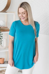 The basic, everyday, on the go top you've been waiting for is here in many fabulous colours! This soft to the touch tee is perfect for all seasons and is nice and stretchy so we know you'll be comfortable all day in this one! Pair this with pretty much anything - denim, shorts, skirts, capris... It will go with them all! This is a definite "buy all the colours" top!