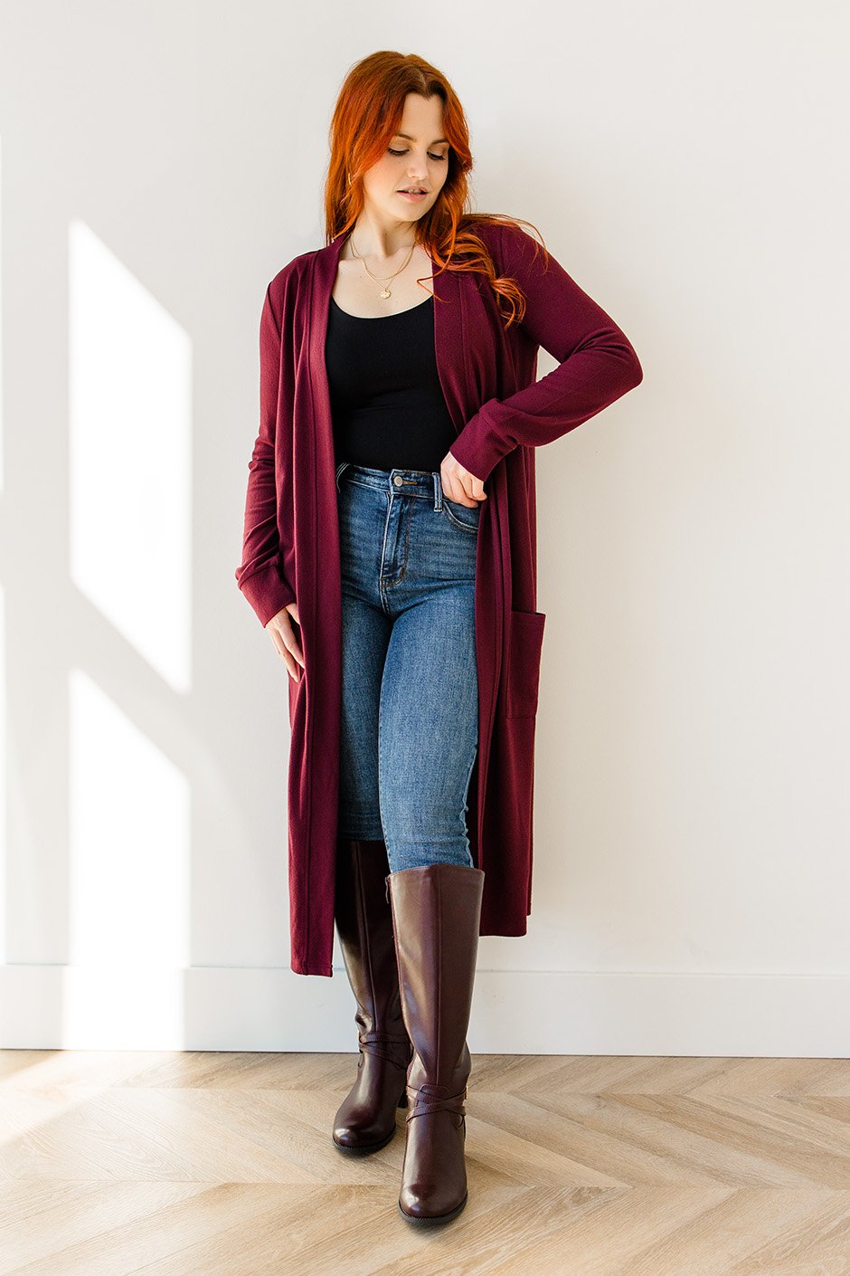 It’s back, baby!! The Long Way Down Cardigan was a total fav, and for good reason. It’s insanely soft, super stretchy, and honestly just sooo comfortable. The length is everything, super long and flowy for that effortless, cozy look we all love. It’s lightweight but still soft and snuggly and yes, it has pockets! I’m wearing a size small and it fits exactly how I’d want it to. Long story short, if you missed it the first time, don’t miss out now!
