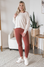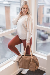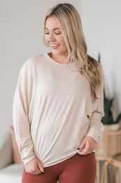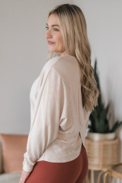Oh my goodness, I have come to absolutely love open-back styles like this. First of all, it doesn't matter who you are, it makes your butt look incredible! Also, I love the added breeziness it offers. It's the perfect top to pair with an athleisure set or to throw on over a comfy bralette such as the Keep a Secret! The material is lightweight but not too thin, soft and it has great movement. I am wearing the size small and it fits great. You can size up for a loose slouchy look if desired!