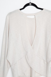 I LOVE open-back tops!! And the tulip hem on the back is so incredibly flattering! This is one of those pieces that you can take anywhere with you! Perfect for denim, but I love it with leggings! The sleeve has a lot of room for movement and the material is lightweight and soft! I am wearing an XL and it's the size I will purchase!