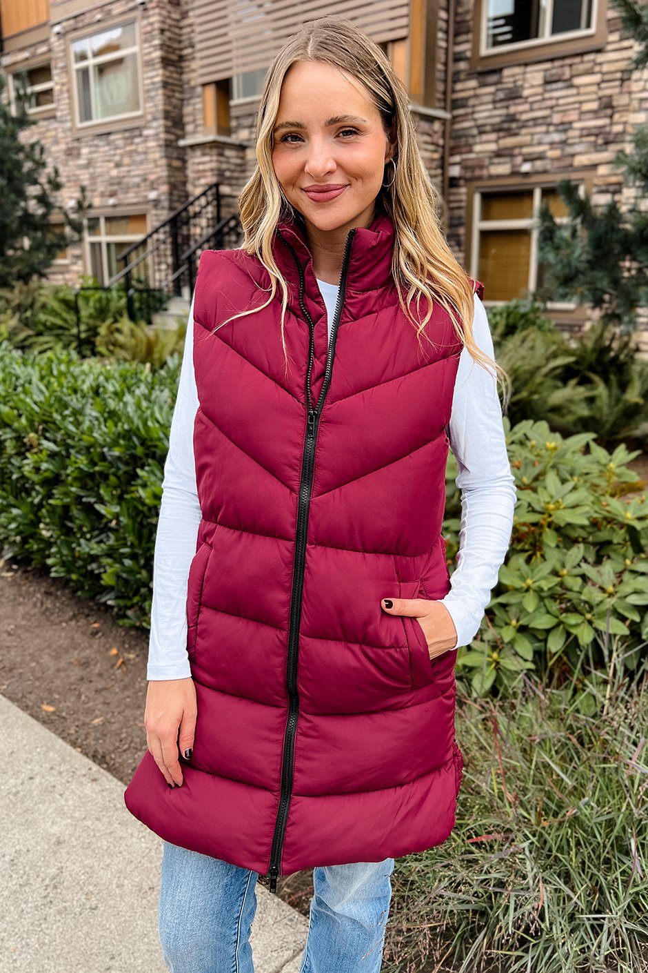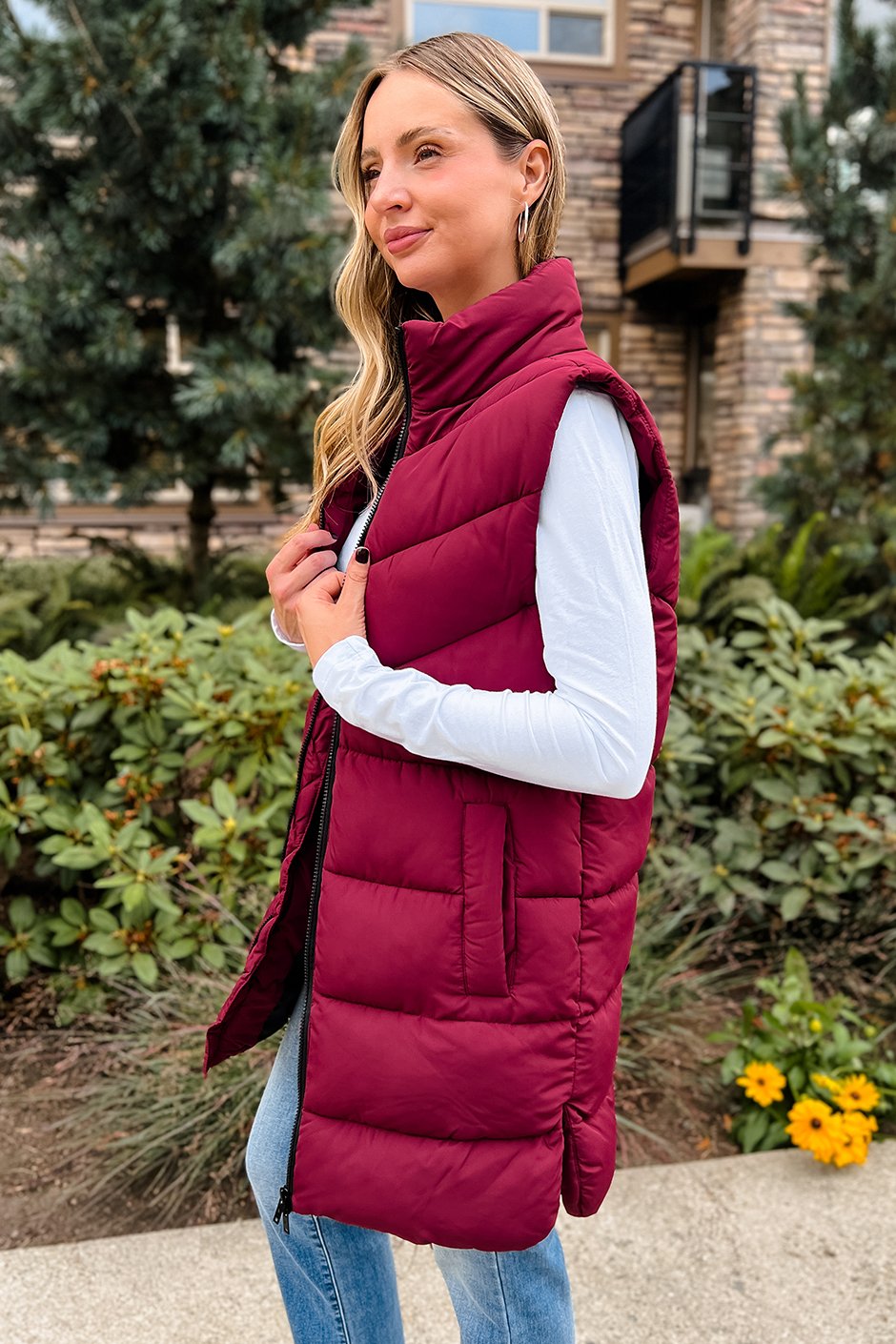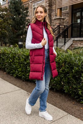 It’s back and better than ever! This vest is the perfect lightweight layer, comfy without being bulky, and the two-way zipper is a total win for moving around or sitting. I wore a size small and loved the fit, not too snug, and the arm holes aren’t tight at all. It’s great for layering over sweaters or long sleeves, and you don’t have to take it off indoors because it’s not super thick or heavy. Just throw it on and go!