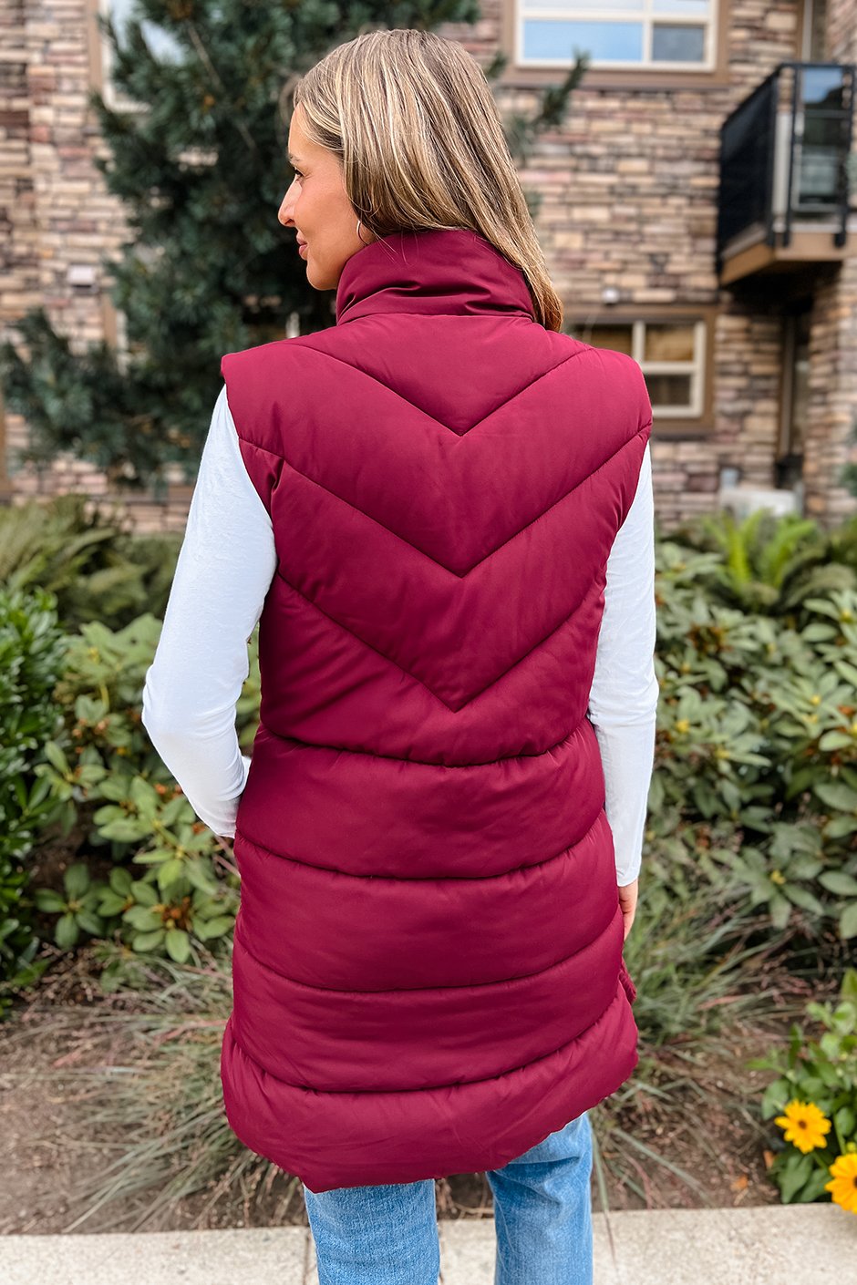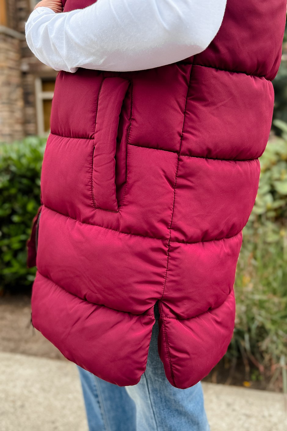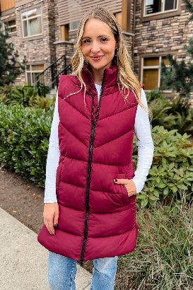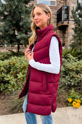 This soft puffer vest will absolutely be a staple in our fall wardrobes! It is so perfect for throwing on over a sweater as you run out the door. The rounded split hem is a unique touch, and we're all about the details! As a bonus, the lining is 100% recycled polyester, made in part from plastic bottles! This vest is doing good for the planet, and for your style!