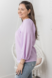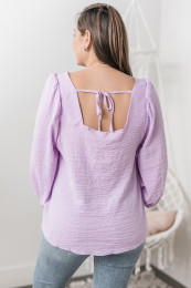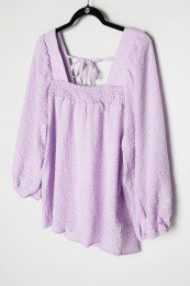 This top is so feminine and romantic! I love the square neckline and that the back is the same! There is also a tie just to ensure it stays in place! The billowy sleeves are truly beautiful! The fabric is lightweight and comfortable to wear! I am wearing a size 42 and it's the size I will purchase!