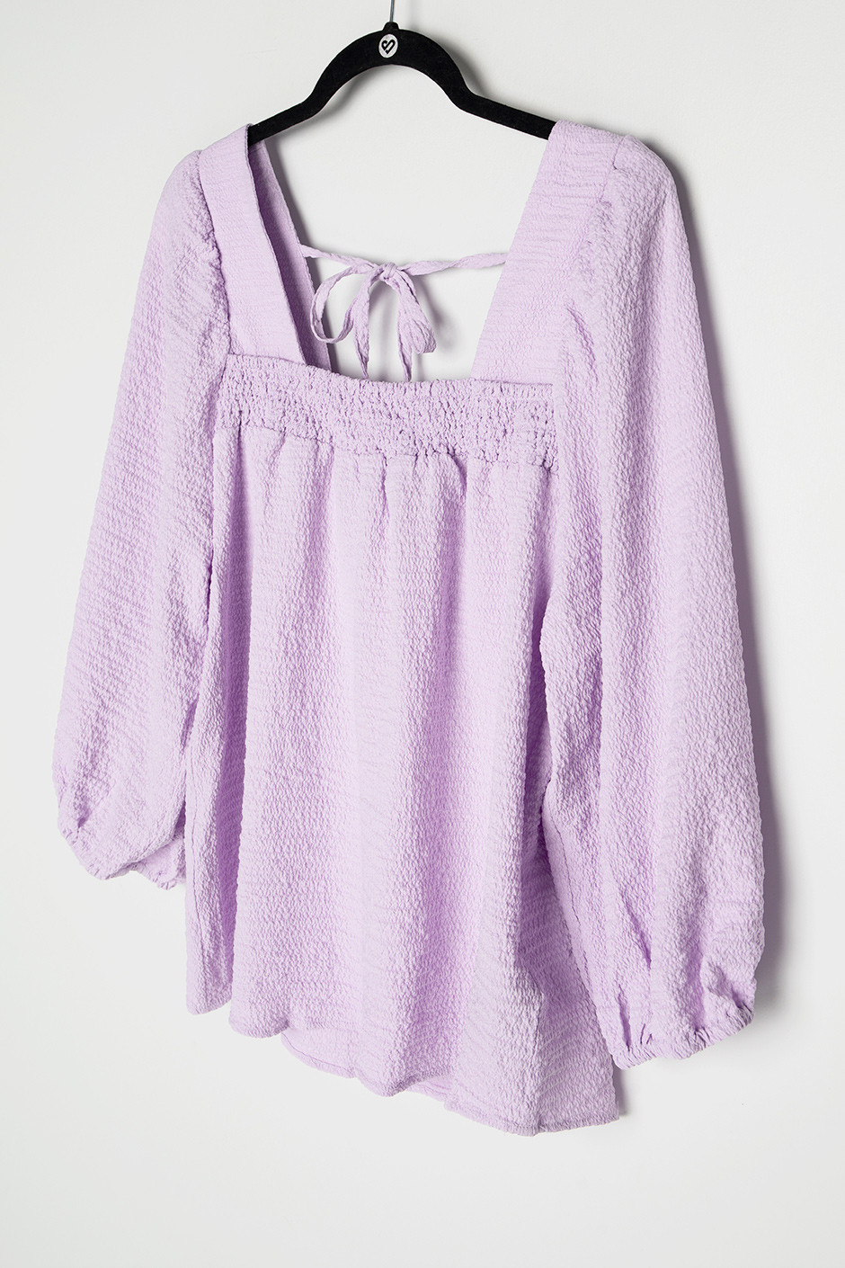 This top is so gorgeous, I can't get over how much I love the material. It's a lightweight textured, crepe-like material that feels very cool to the touch on the skin and almost silky! I love the square neckline, it's so unique. The tie at the back adds the perfect unique touch as well! I am wearing the size 36, which basically equates to a small and it fits to perfection with some room in the sleeves as they are a balloon style with elastic cuff!