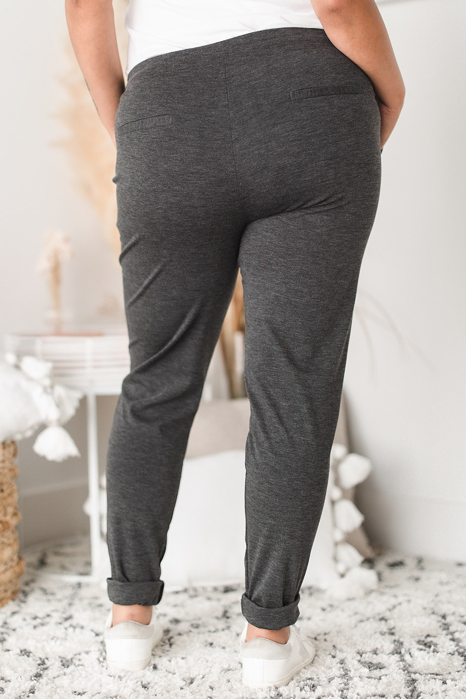 These pants are the perfect mix between comfortable and dressy! Extremely versatile, they are soft, stretchy and feature two front pockets as well as a functional drawstring. Keep these casual with a basic tee and sneakers or dress them up with a blouse and heels!