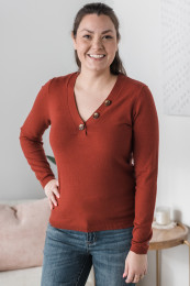 This super-soft top is sure to elevate any look! It features a V-neck and a faux 3-button closure for extra detailing. You'll be looking so put together with this top. Pair it with some jeans and ankle boots, and you're all set!