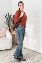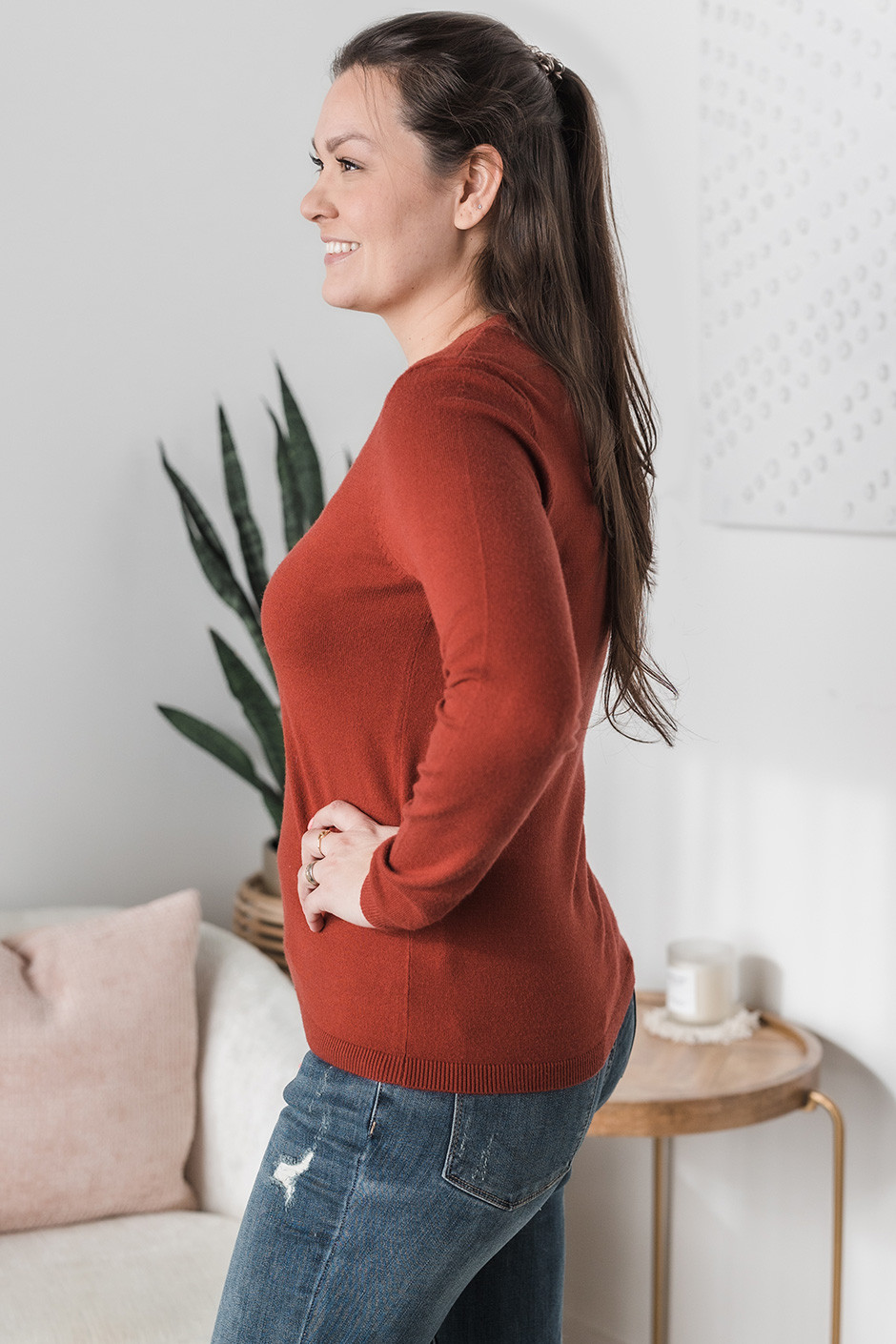 Holy heaven, this top is so soft. Like so soft, you guys are going to be blown away! It's much softer than a typical cotton and has lots of stretch! The buttons are faux so this piece features a nice open v-neck. Feel free to pair it with a tank or bralette underneath if you prefer more coverage. I am wearing the size small and I love the fit. It offers a bit of room throughout the body without being loose. This is going to be a staple transitional top!