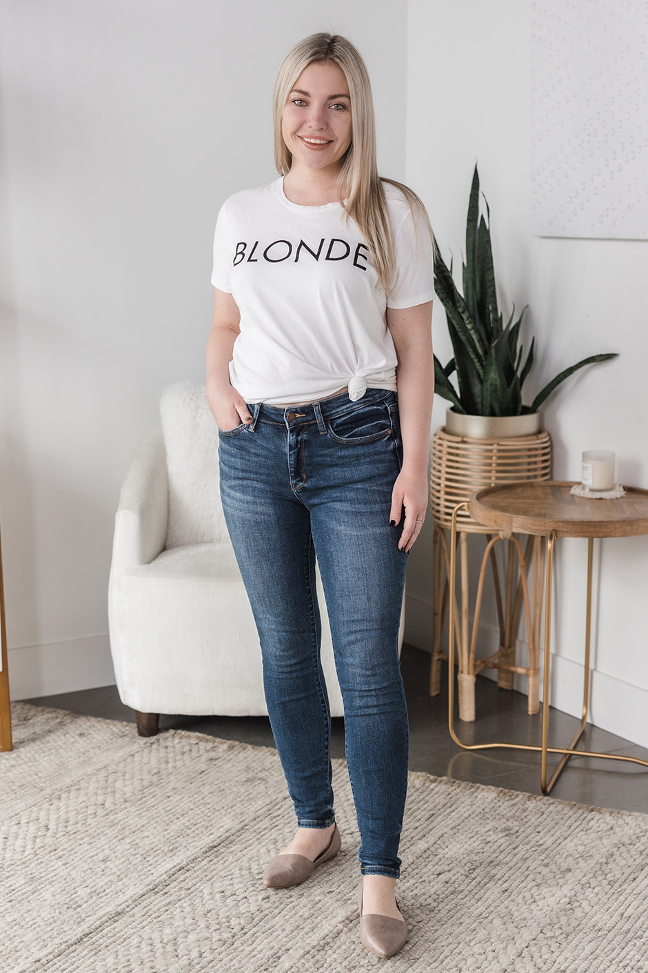 Judy has my heart and always will! These are going to be a true fan favourite, I can assure you! Stretchy, non-distressed classics. I am wearing my true Judy Blue size which is a 13 and they are the perfect fit everywhere!