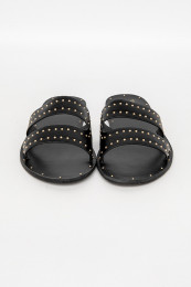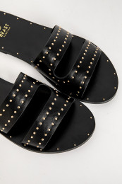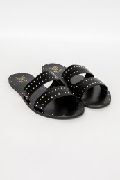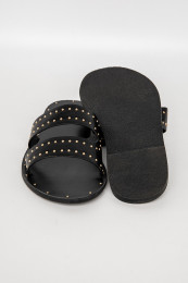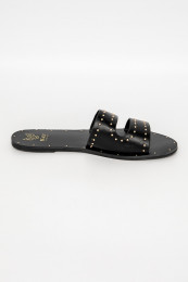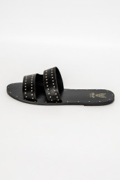 Remember our Viva Summer Sandals? Well, the studded sandals are back with flat straps! As slides, they're so convenient and great for summer. From the little decorative studs to the straight-across straps, these sandals are very versatile. Whether you dress them up or stick to a casual ensemble, you'll love how easy they are to pair!