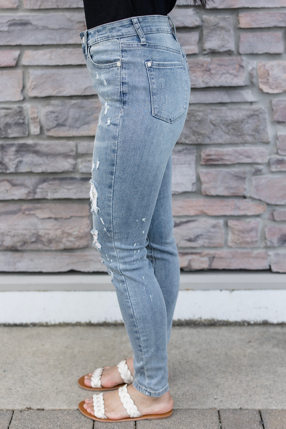 These jeans are so comfy, of course it's from Judy Blue! It has the right amount of distressing, the wash helps with the versatility of these jeans. These jeans are an easy decision for everybody. Dress it up with a blazer or down with a casual tee, and you'll be good to go enjoying the sun in these comfy Judy Blues. The best part is the lace detailing that you can see peeking underneath the distressing, it adds the feminine touch to it which is amazing! I am wearing size 3 in these, it is my true size and my preferred fit.