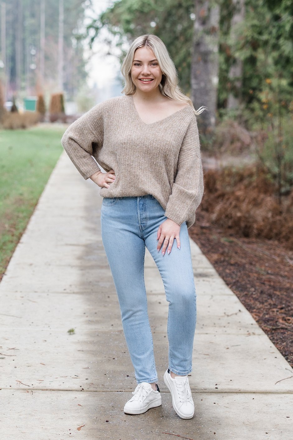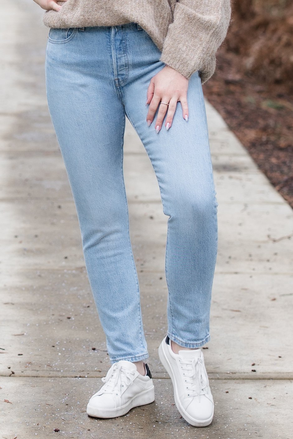 Dare I say these are my favourite LEVI'S to date?! They're the perfect straight-leg, almost skinny jean with that true denim feel we're used to from this brand. I am wearing the 29, the same size I've preferred in all LEVI'S so far. They are a mid to high-rise, perfect for pairing with a tucked sweater or tee!