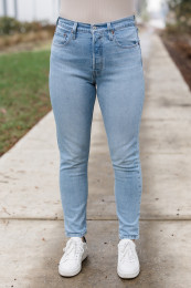 These Levi 501 skinny jeans are a total win! They’ve got that classic 501 vibe with a perfect skinny fit that hugs in all the right places. The denim is soft but sturdy, making them super comfortable and durable. I love how versatile they are—dress them up or down, and they always look fantastic. I'm wearing my usual size 29 they are definitely a true skinny jeans so they are tight at first but they give after wearing.
