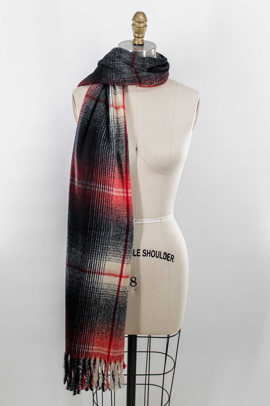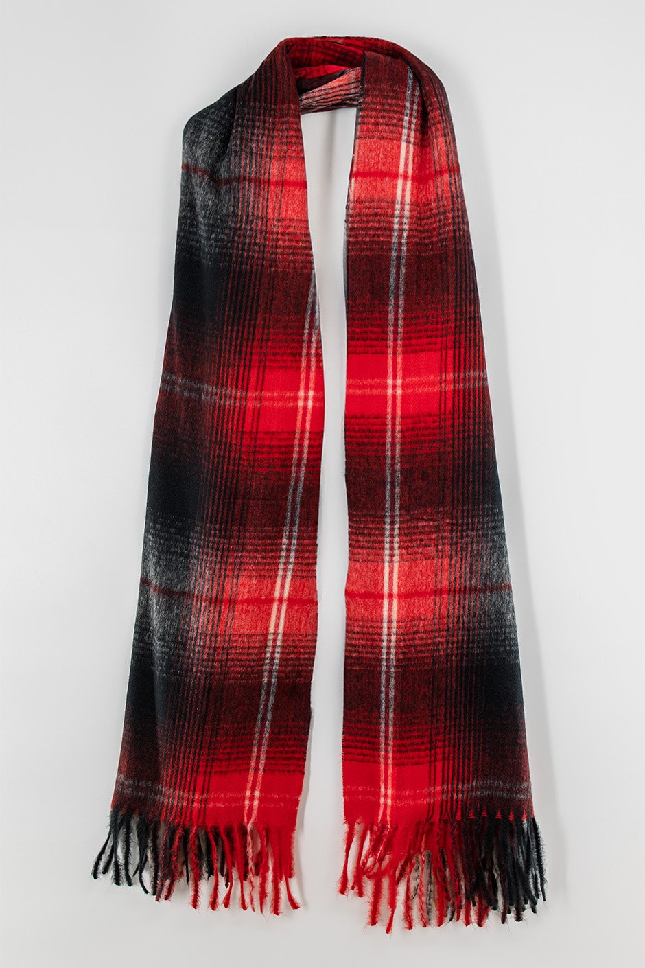 This scarf brings timeless style with its classic plaid pattern and tassel fringe ends that add movement. The perfect finishing touch to any outfit - wrap it around your neck or drape it over your shoulders for instant sophistication