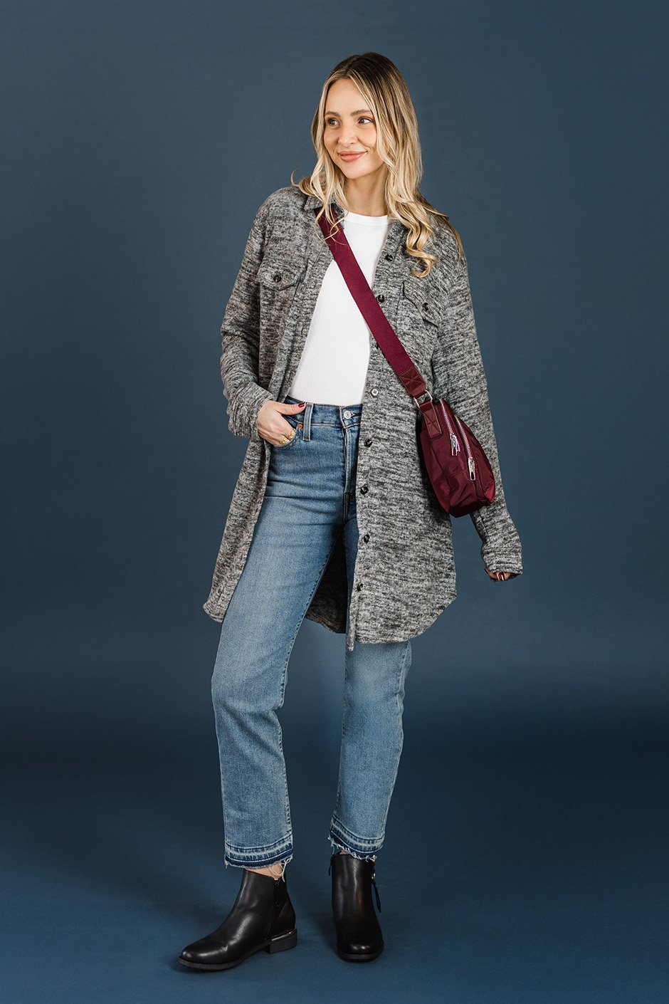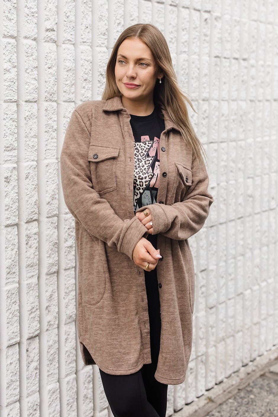 I’m obsessed with this shacket! It’s super soft and lightweight, making it perfect for layering. The long length is great—it looks amazing with both jeans and leggings. I went with my usual size, M, and the fit is spot on. The colors are also gorgeous! Definitely a piece I’ll be wearing all the time. Highly recommend!