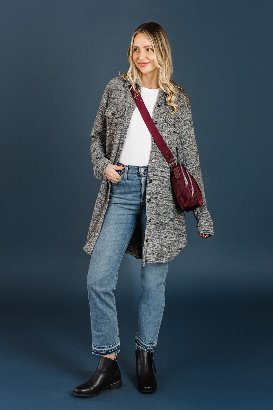 A jacket that feels like a super cozy cardigan, yes please! This is incredibly soft, it honestly fees like a blanket but not super thick at the same time. It will be a perfect pre-fall piece to add to your wardrobe. I'm wearing the sample size small here and while the fit was great I would likely size up to my usual size M for a more tts fit.