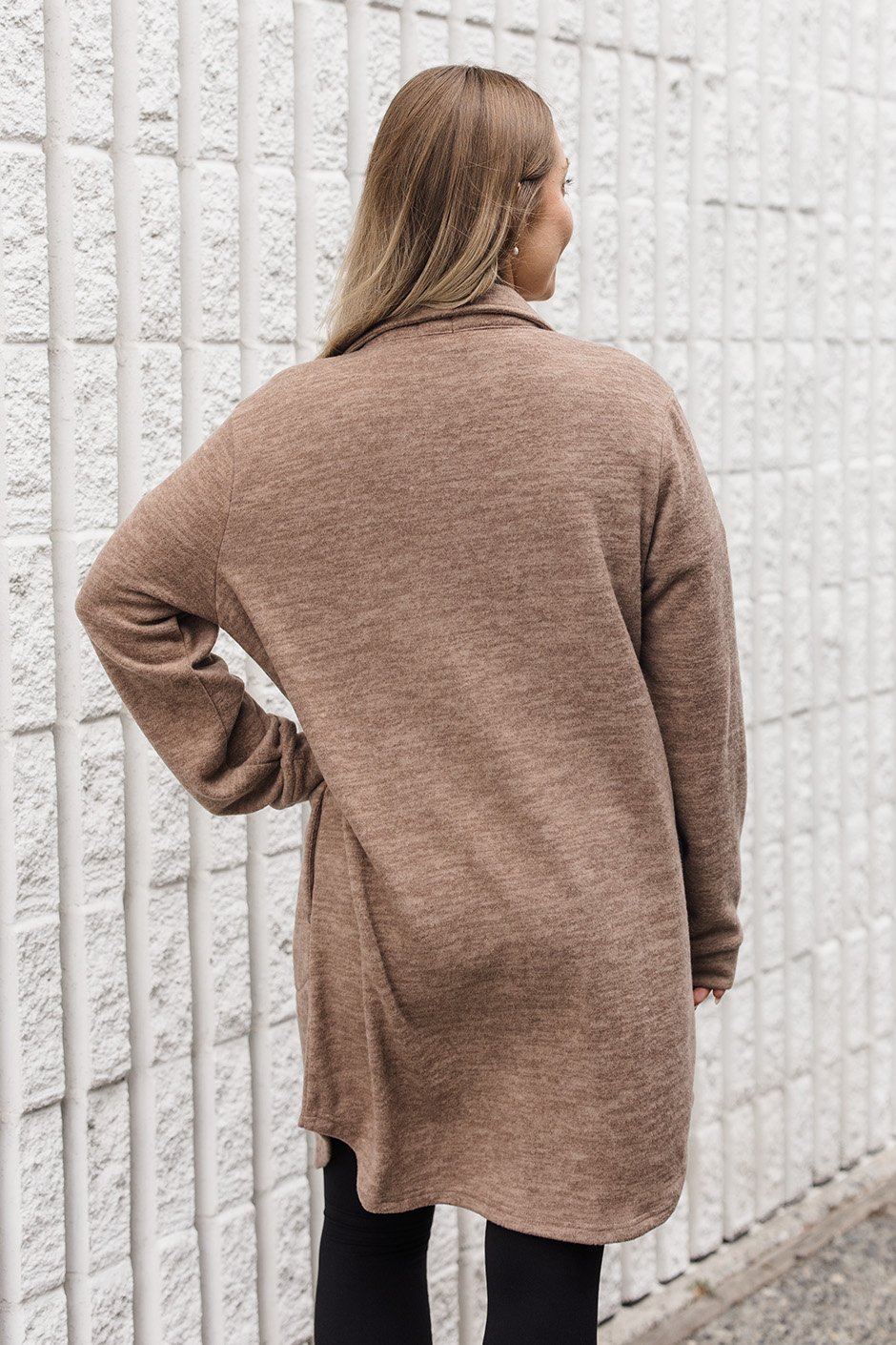 This was such a popular, widely loved piece over the past few years, we had to bring it back! It has a fleecy soft feel with a relaxed fit and extra long and cozy sleeves. I am wearing the size small and had some room in this piece but I like the fit. I could go down for a less roomy fit if I wanted to though but I love how it feels like a cozy blanket cardi!