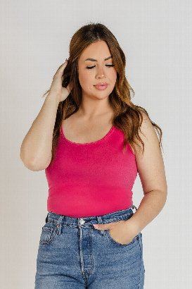 Soft, stretchy and the extended length is perfect for layering or wearing solo, offering great coverage that stays in place throughout the day. I'm wearing this tank in a M.