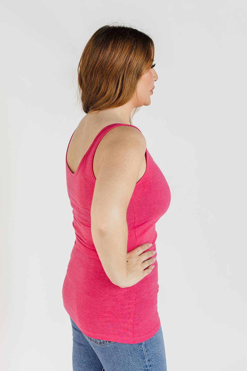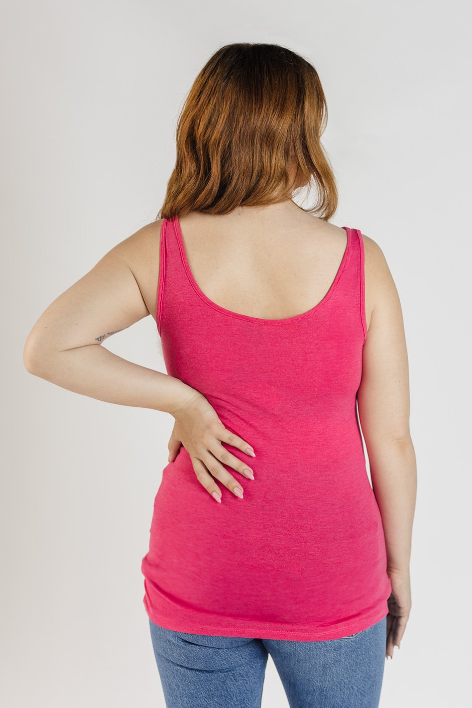 The Long Shot Tank is a wardrobe staple! It's longer length offers great coverage and a flattering silhouette. The organic cotton fabric is soft and lightweight, perfect for layering or wearing alone on warmer days. Pair it with leggings for a workout or with jeans for a casual outing—it’s incredibly versatile. I’m obsessed with how it hugs my curves without being too tight, making it a go-to piece for any occasion. The size small was great but I will go with a medium in this for a bit more comfort all around. I also love the feeling of being covered by another layer underneath. It's great for post-baby and breastfeeding!