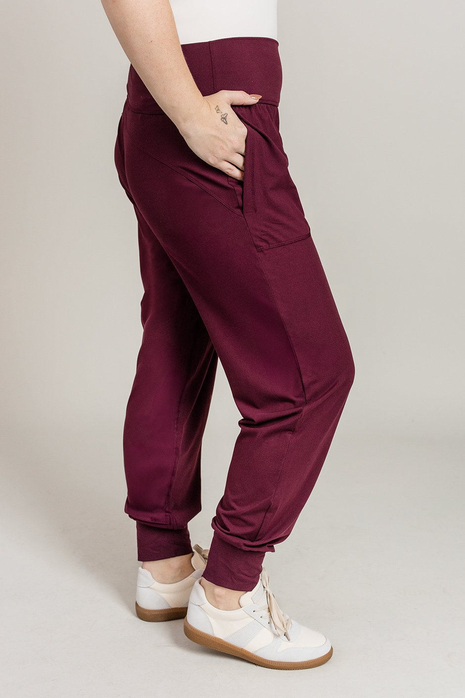 I am absolutely loving this new brand, Rae Mode! This is the same brand as the Comfort Zones Crop Cami and Comfort Zones Leggings! They have the same super cozy, almost brushed feel with tons of stretch. They're a higher rise with a slightly looser leg and jogger cuff. Plus pockets and a nice wider waistband! I seriously would not change a thing about them. I am wearing the size small and they fit exactly how I want them to! There is a bit of room but this is my preferred fit in this style of athleisure pant. These are definitely more of a lounge style, athleisure jogger as opposed to a workout pant because the material is more cozy than athletic. You guys are going to LOVEEE these, I promise!