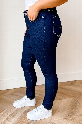 Oh my goodness... these have the comfort level of JUDY BLUE I am not kidding! They're soft, stretchy, feature a nice mid-rise... I am IN LOVE! I love the classic, non-distressed skinny cut of these jeans, they will literally go with anything. Now don't forget, these are LEVI'S, which means the quality of denim is outstanding. These will last! I am wearing the size 28 and do like the fit but would also be comfortable in the 29 if I wanted a bit more room in the waist. If you want them tighter, go with the smaller size, if you want them a bit comfier, for with the higher size. For reference, I can wear both 28 and 29 in the non-stretch LEVI'S denim as well, it all just depends how you want them to fit!