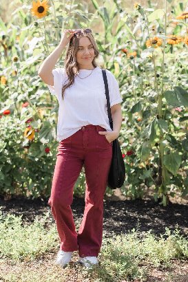 These are such a cute style! The perfect alternative to a classic skinny style! It has a center front seam and more of a wide leg style. Perfect for a sneaker and tee for a casual and cute look. I am wearing a 15 and I love the way they fit! These are just the perfect addition to the closet!