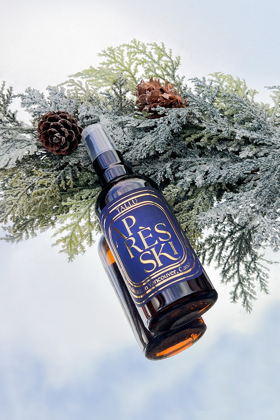 Apres Ski: Distilled Water; Eucalyptus, Pine, Clove, Cinnamon, Vanilla.