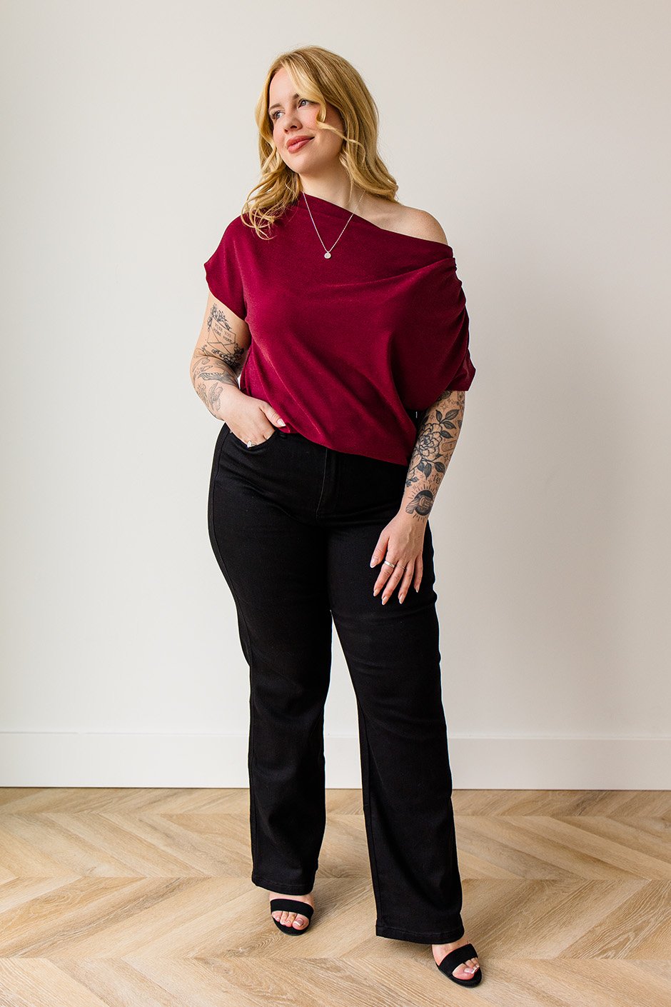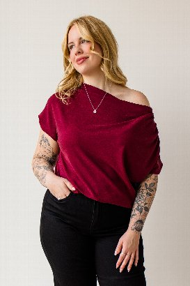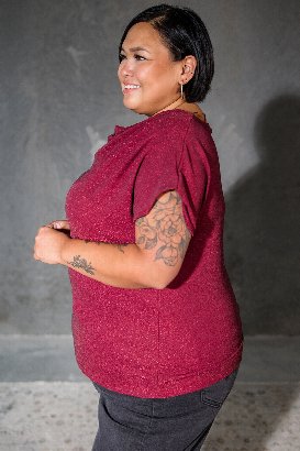 * Brenda loved the fancier look of this top and said it made her feel so elegant! She is wearing the size small and loved the fit. She is between an XS and S and could have worn the XS but ultimately didn't mind the fit of the S. She loved the fancier neckline and the slight sparkle in the fabric!