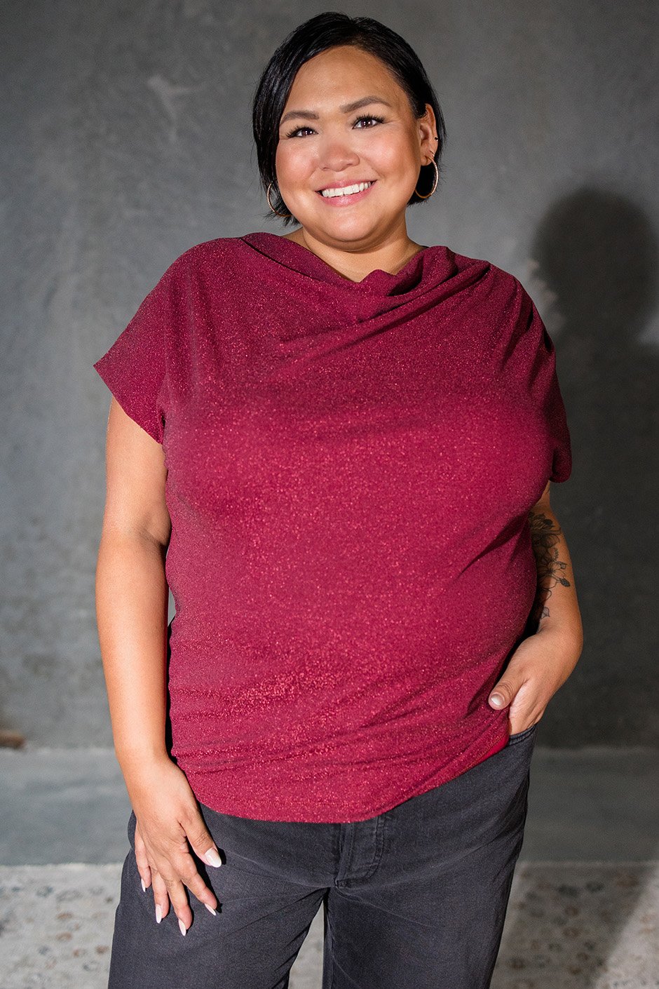 The Elegantly You Top: Effortless sophistication meets comfort with a cowl neckline, cap sleeves, and a beautifully stretchy fit. Elevate your style with ease.