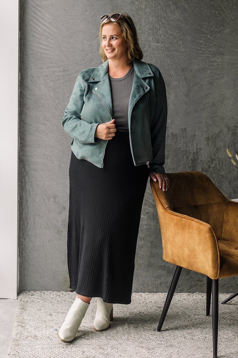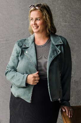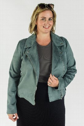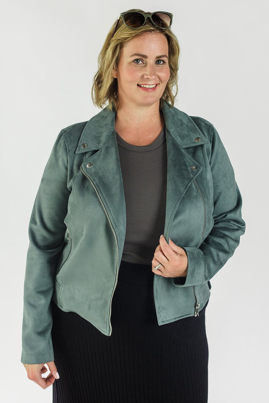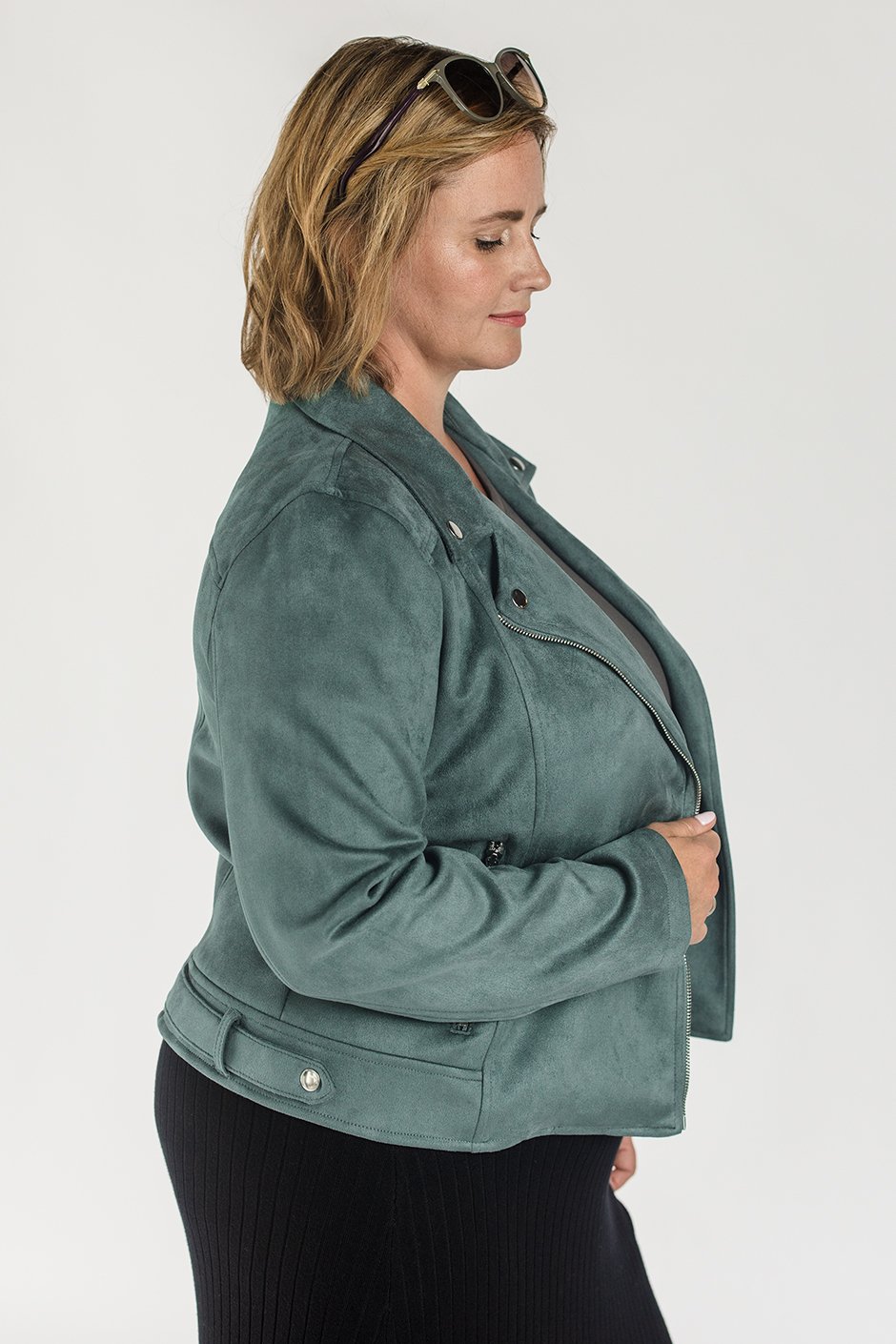 The first thing I thought when I tried this on was perfect a jacket I can drive in! It has that classic moto leather jacket look but the fabric is a soft faux suede so you don't feel restricted at all when you're wearing it. Whether you’re layering up for a night out or just want to add some flair to your everyday look, this jacket has you covered. It’s stylish, versatile, and oh-so-comfortable! I'm wearing my usual size M in this jacket.