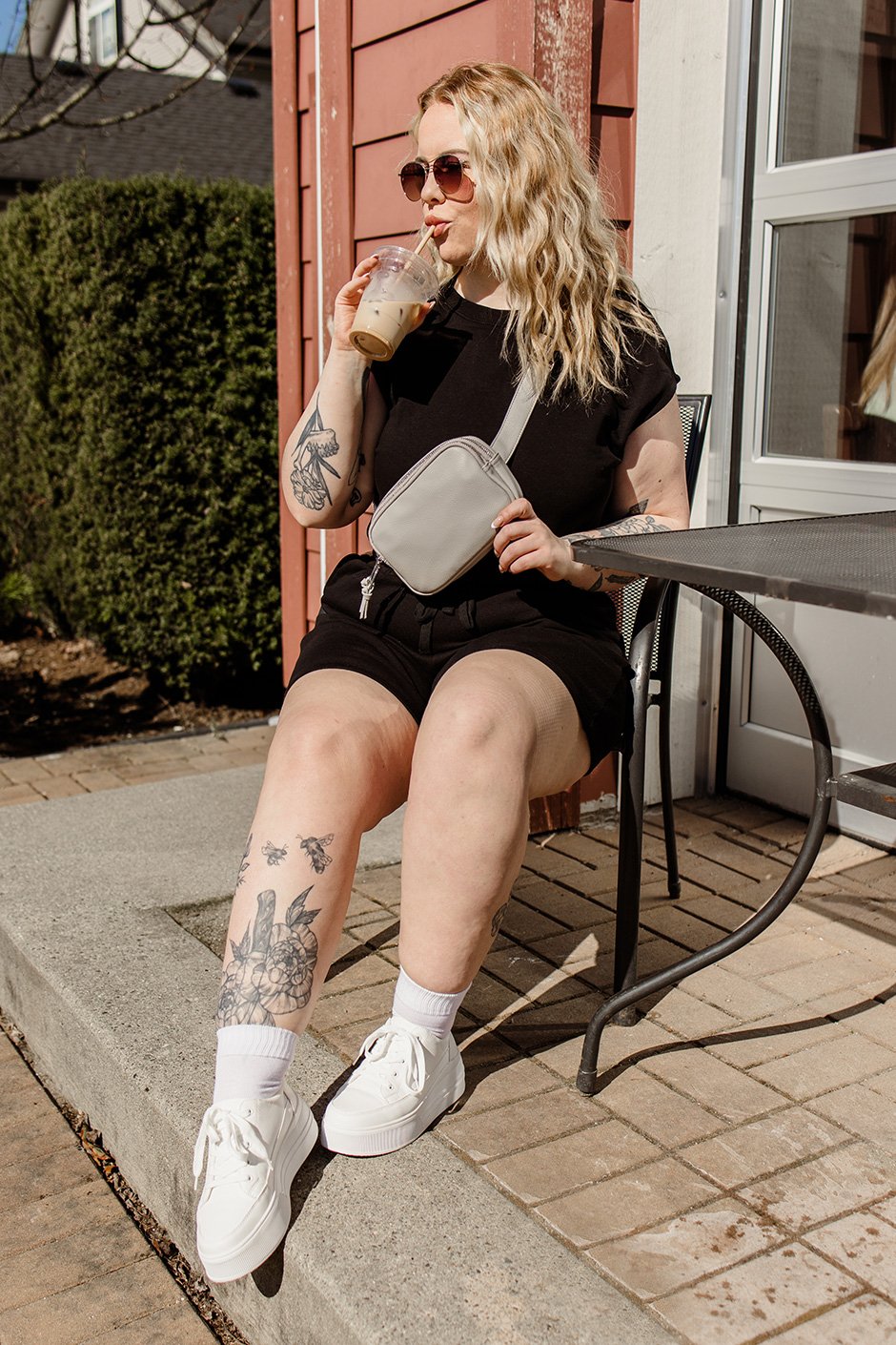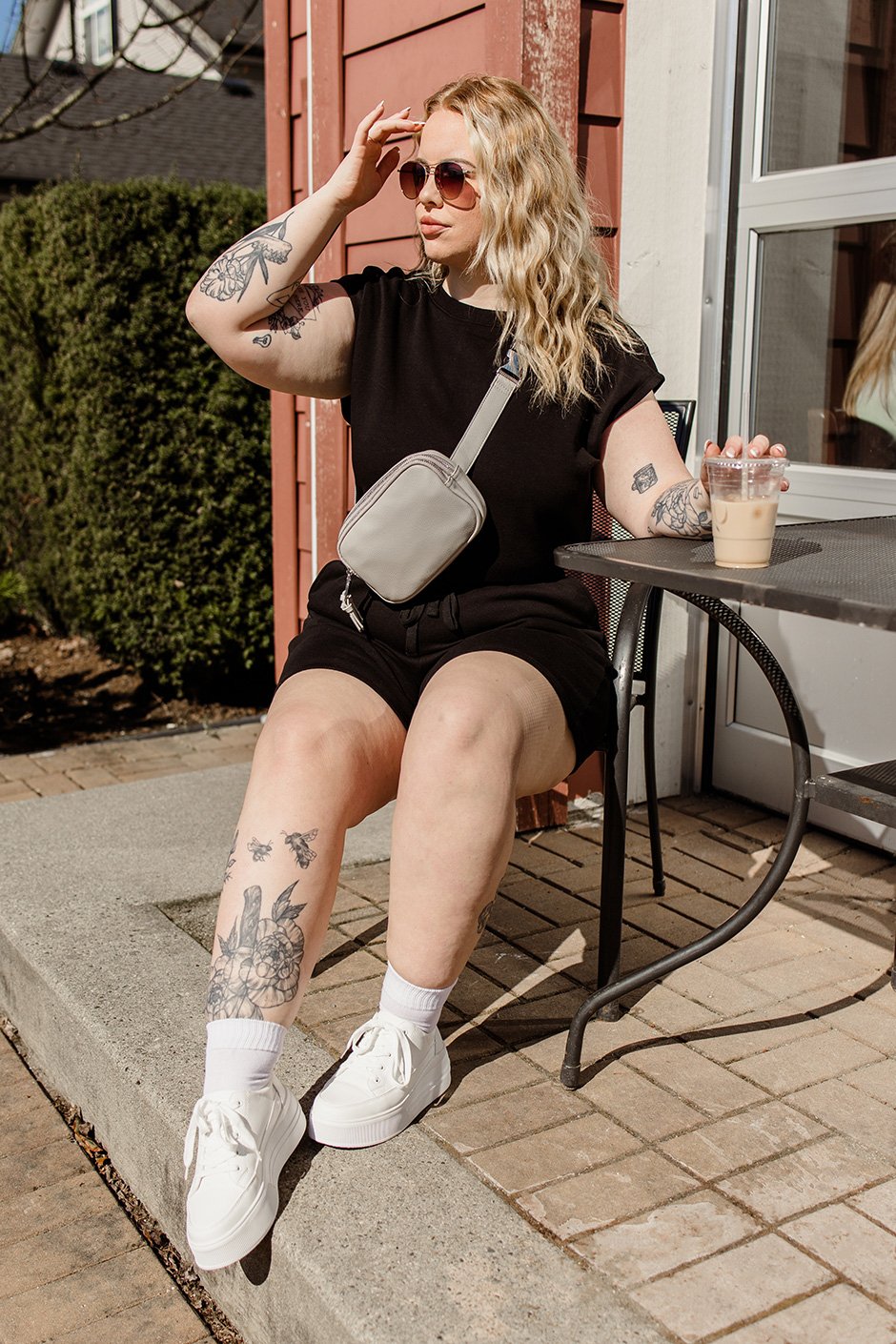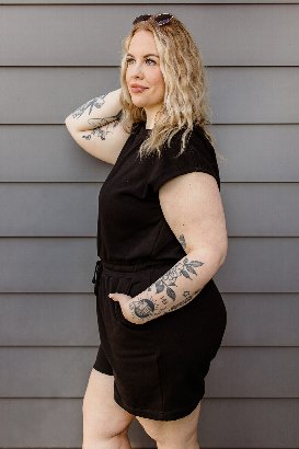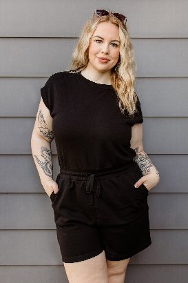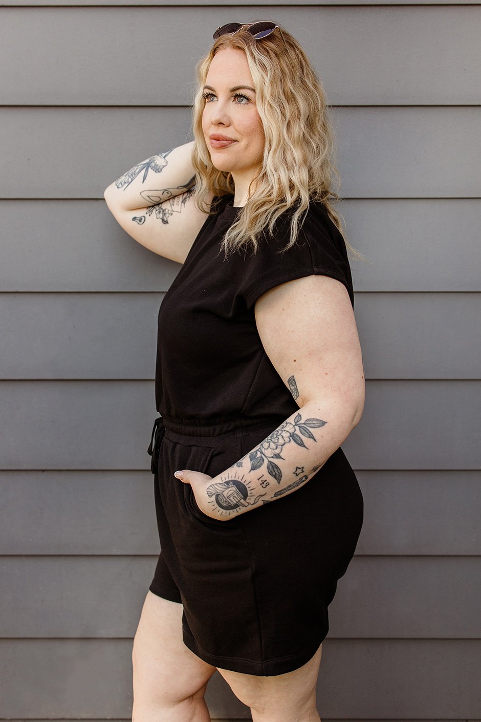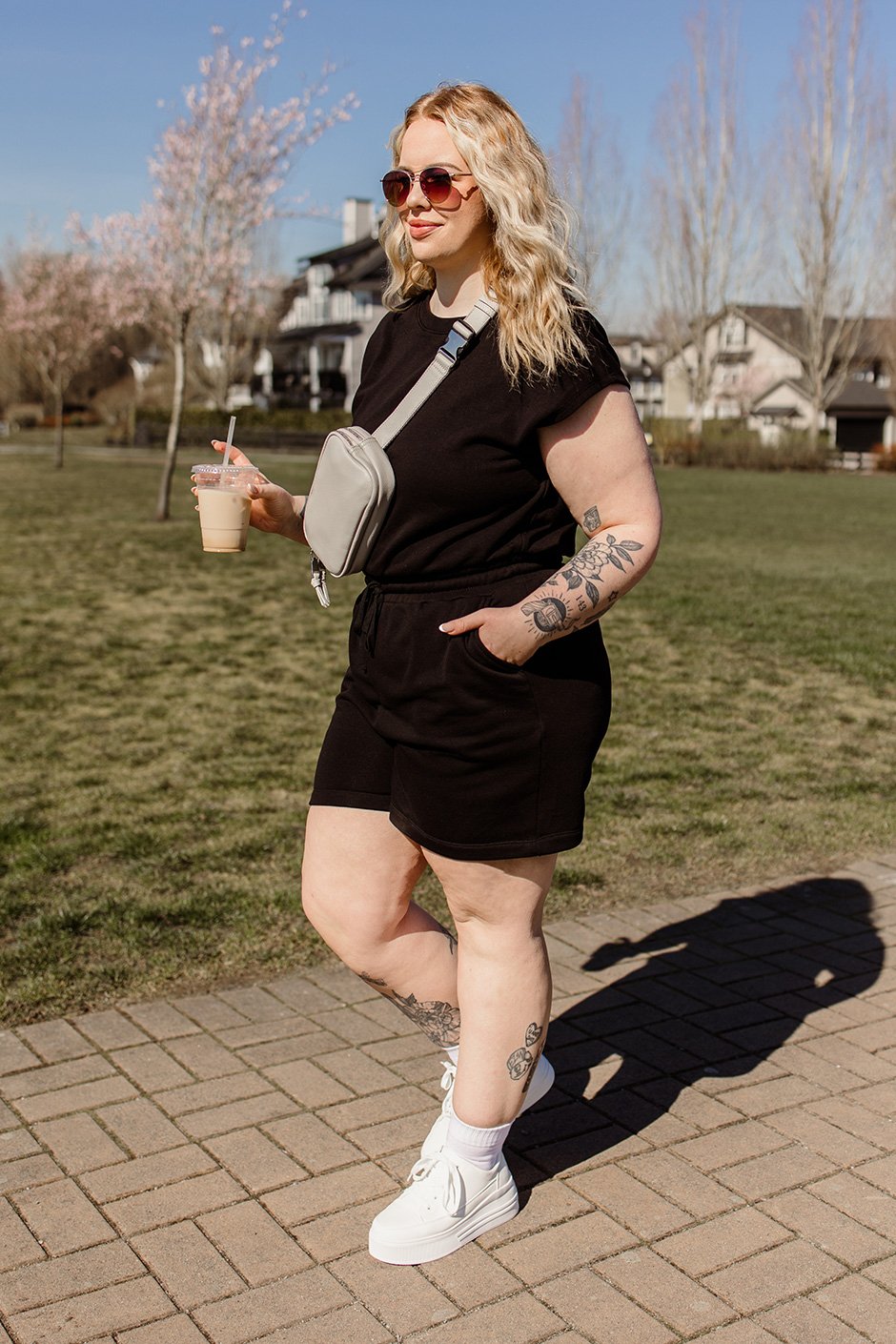 I could live in this romper! It feels like your favourite sweat set in romper form. The elastic waist wasn't too tight and the length of the shorts was just right for me. I'm wearing the size large and love the fit.