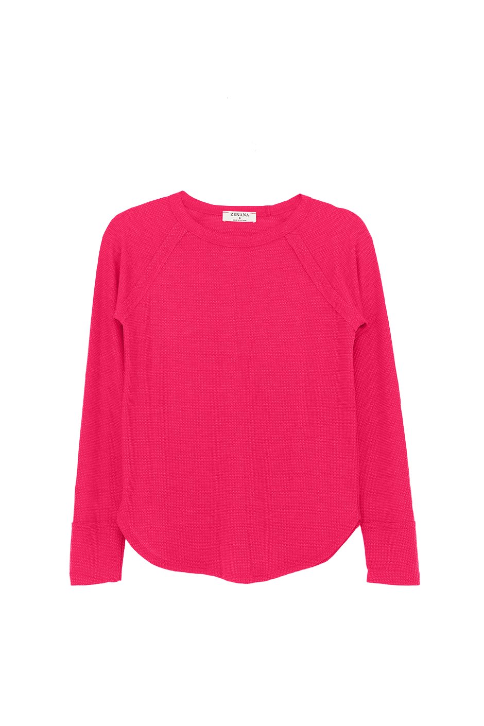 Get ready to fall in love with the Lauren Waffle Top – it's the ultimate blend of cozy and chic! With its round neckline and raglan sleeves, it effortlessly exudes a relaxed yet stylish vibe. Made from a dreamy baby waffle knit, it's as soft as can be, perfect for those laid-back moments. And with its rounded hem and stretchy material, slipping into this top feels like being wrapped in pure bliss! Whether you're hitting the town or unwinding at home, this piece is your ultimate choice for putting comfort first without sacrificing style! Pair it with your favourite jeans or shorts for a classic casual look, while it transitions seamlessly to cozy lounging sessions with joggers or pajamas!
