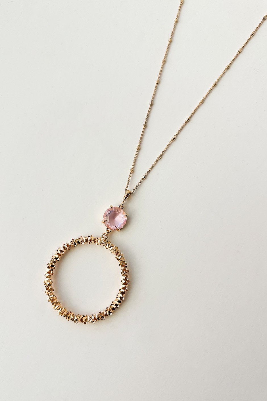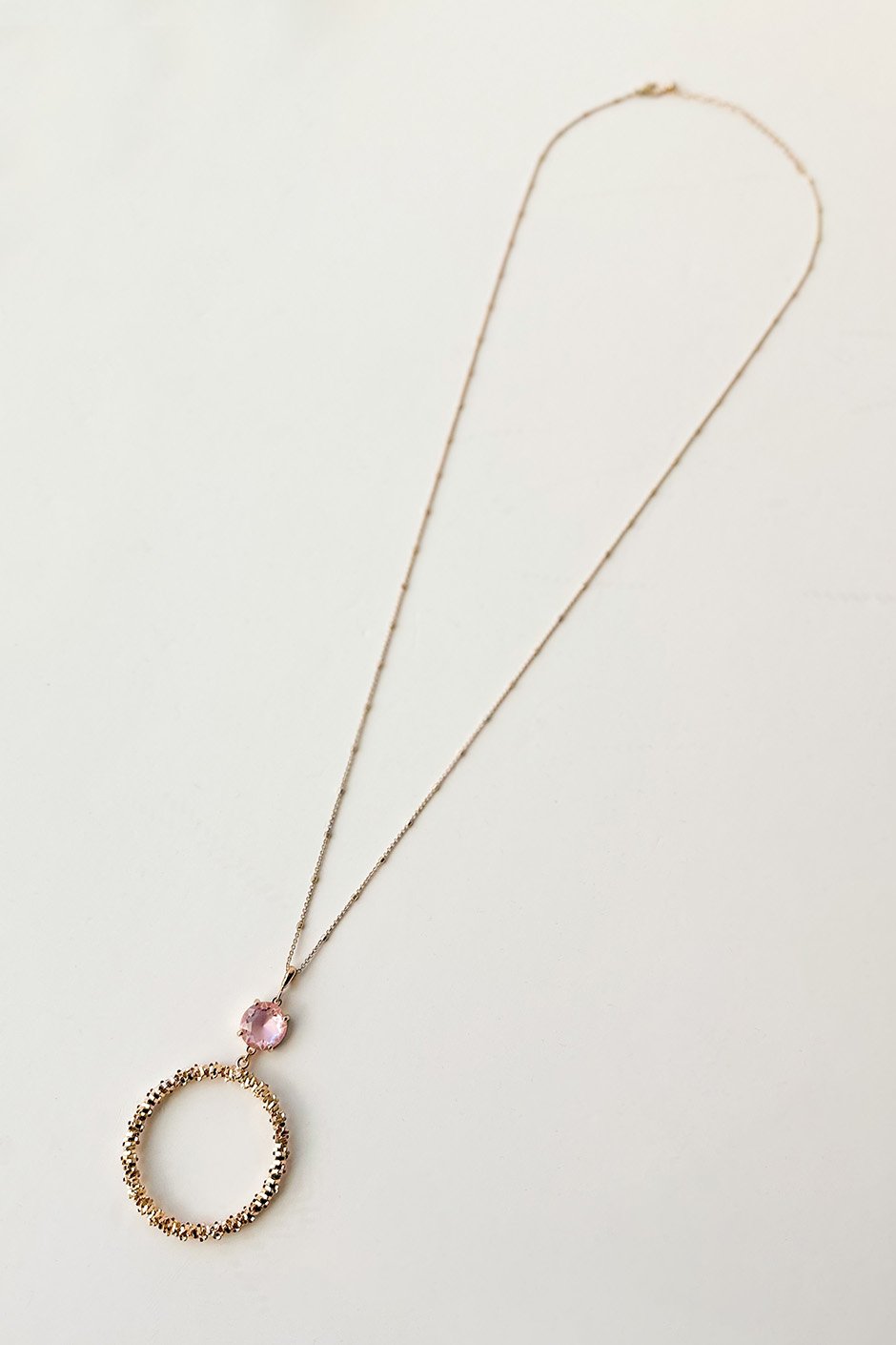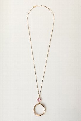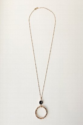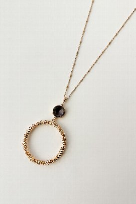 If you're a fan of long statement necklaces, this one is for you! The gem and hoop pendant detail adds a bit of sparkle. It's light and easy to wear, and it's long enough that you can double it up for a different look.