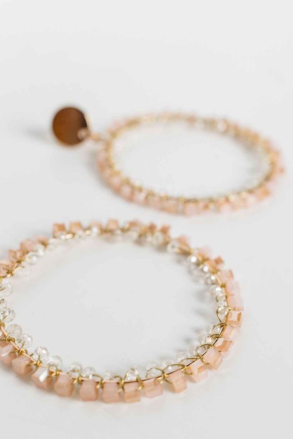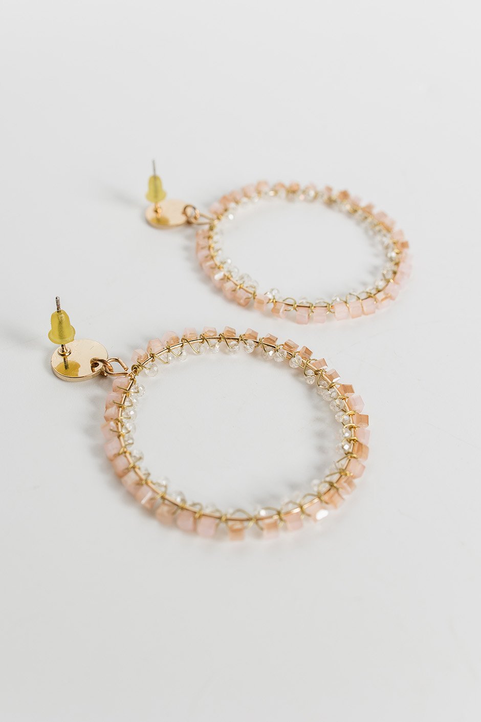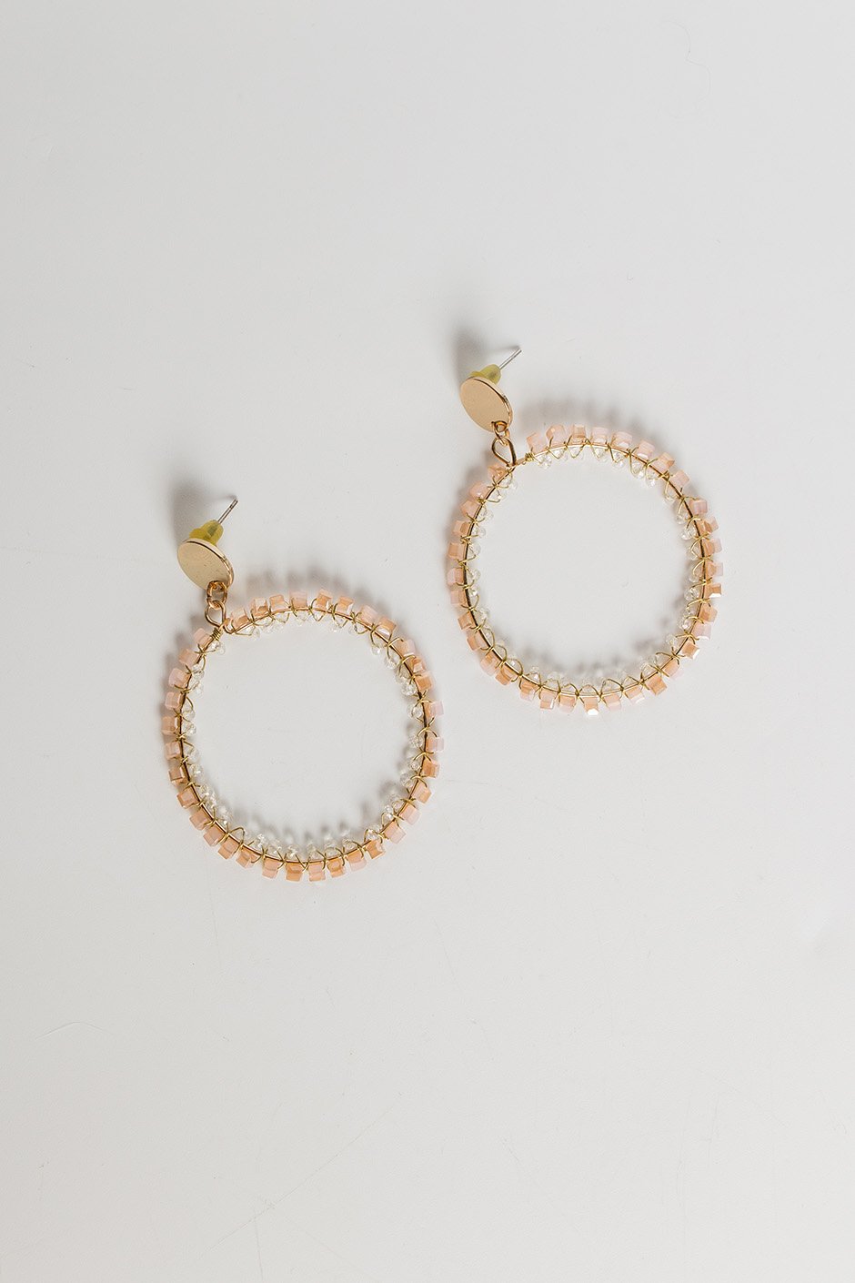 These charming earrings feature a delicate round design adorned with mesmerizing glass bead details. With push-back closures, they offer both style and comfort, making them perfect for any occasion.