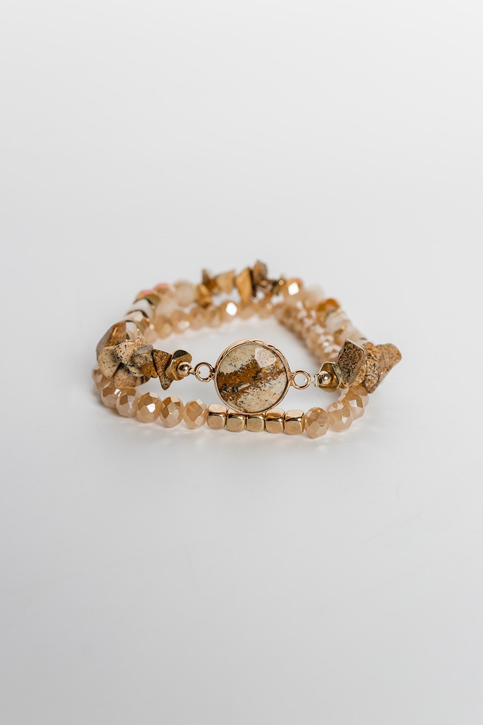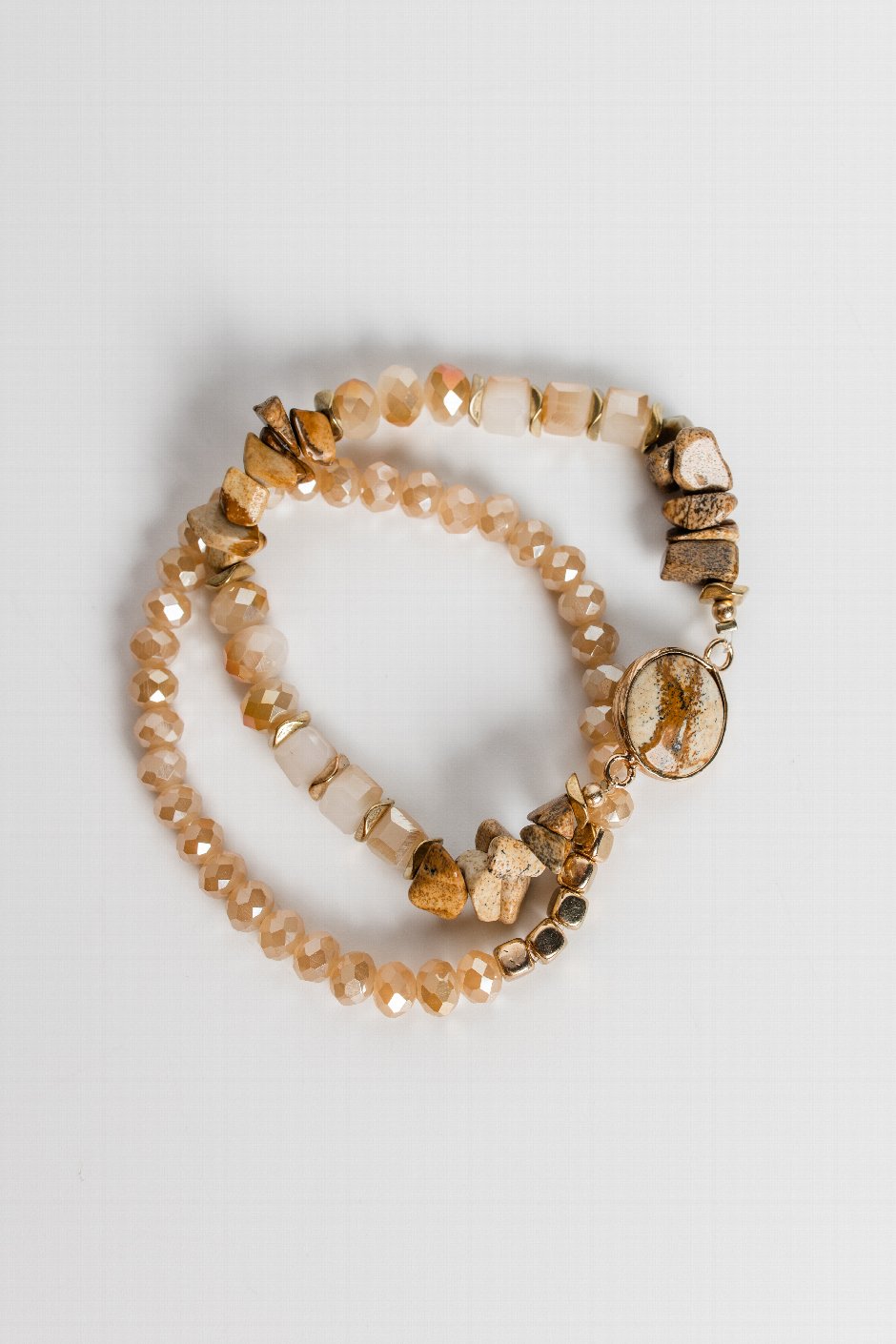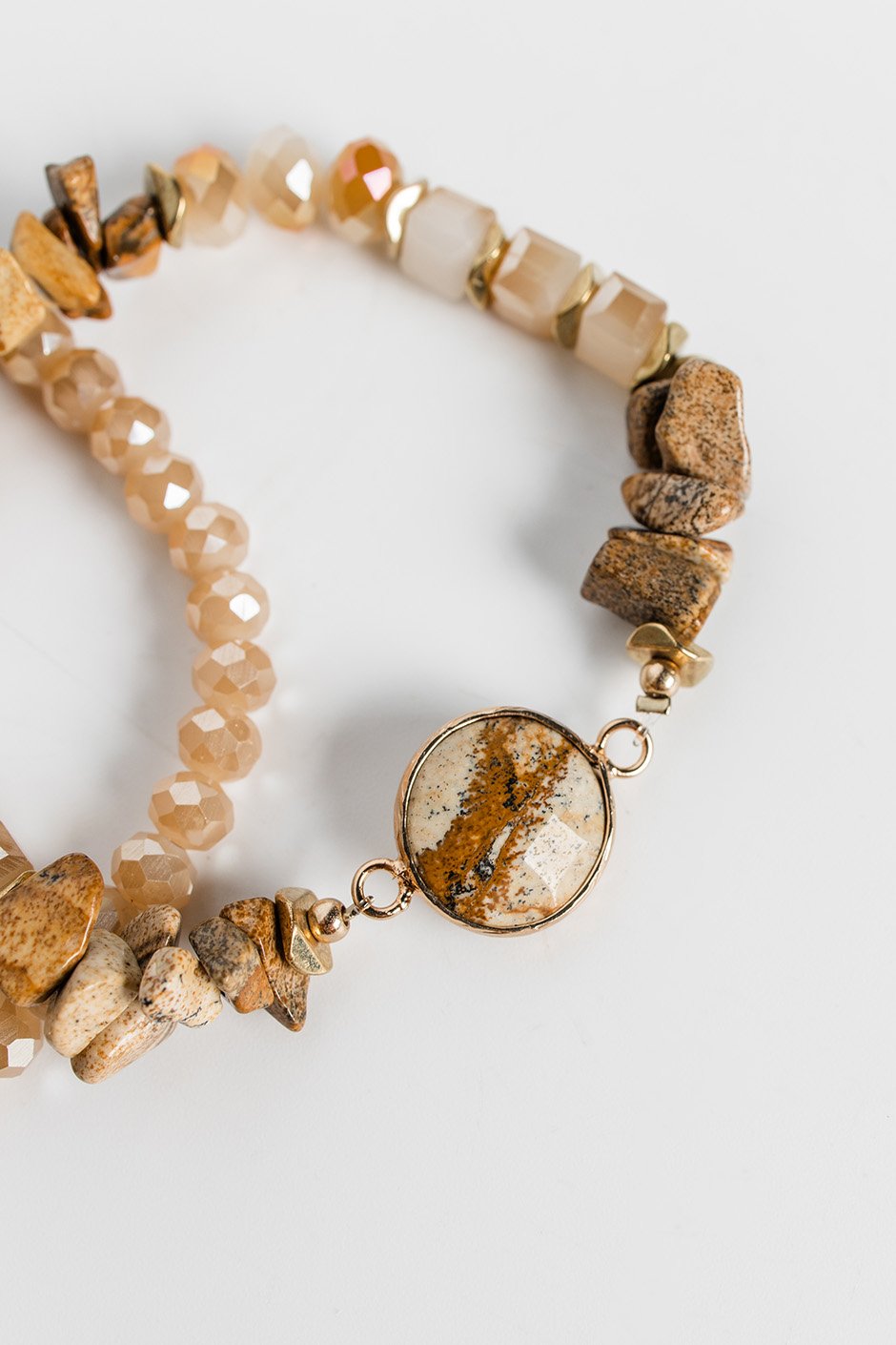 This bracelet is a perfect blend of style and versatility! The unique combination of stones and beads allows you to style them stacked or solo for that bohemian-chic look! The stretchy design ensures an effortless fit.