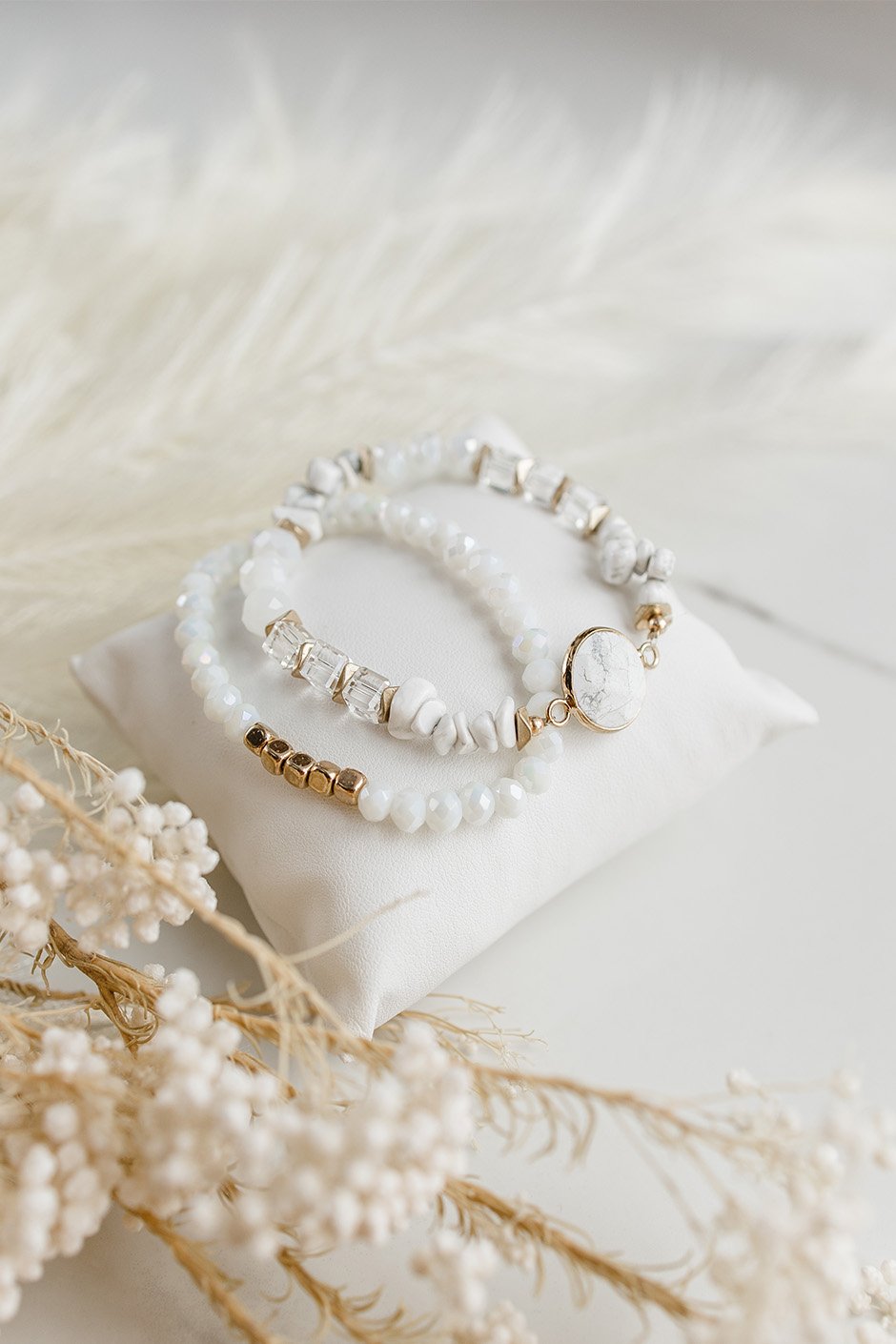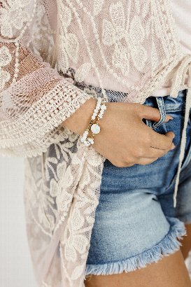 Elevate your look with this beaded bracelet. I love the subtle sparkle it adds. The bands are super stretchy, comfortable and the perfect addition to an outfit!