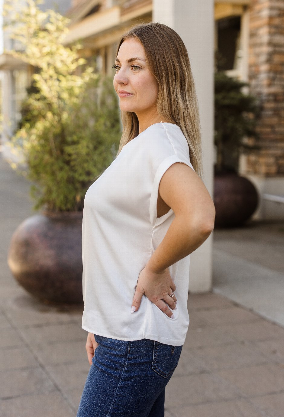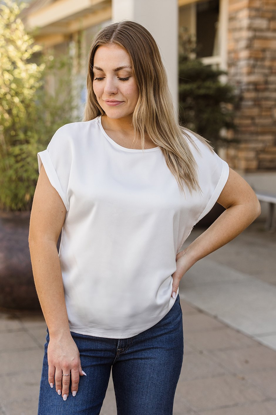 This top is an absolute game-changer! The satin front gives it a touch of glam, perfect for when you want to look put-together without too much effort. The back is made of stretchy cotton, so it’s super comfy and moves with you. Hello best of both worlds!! I'm wearing my usual size small and loved the fit.
