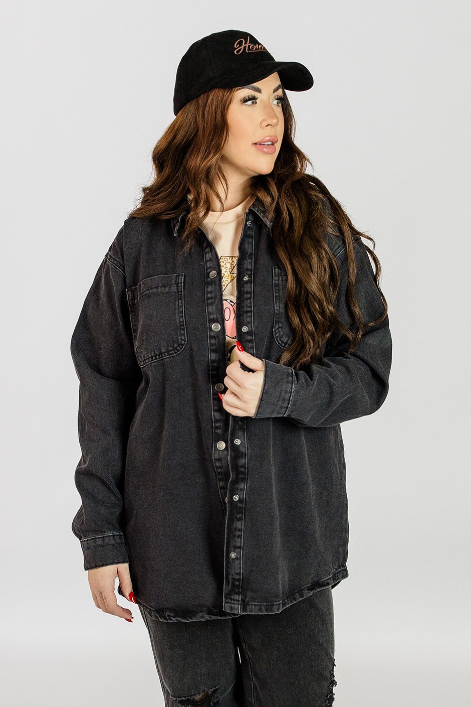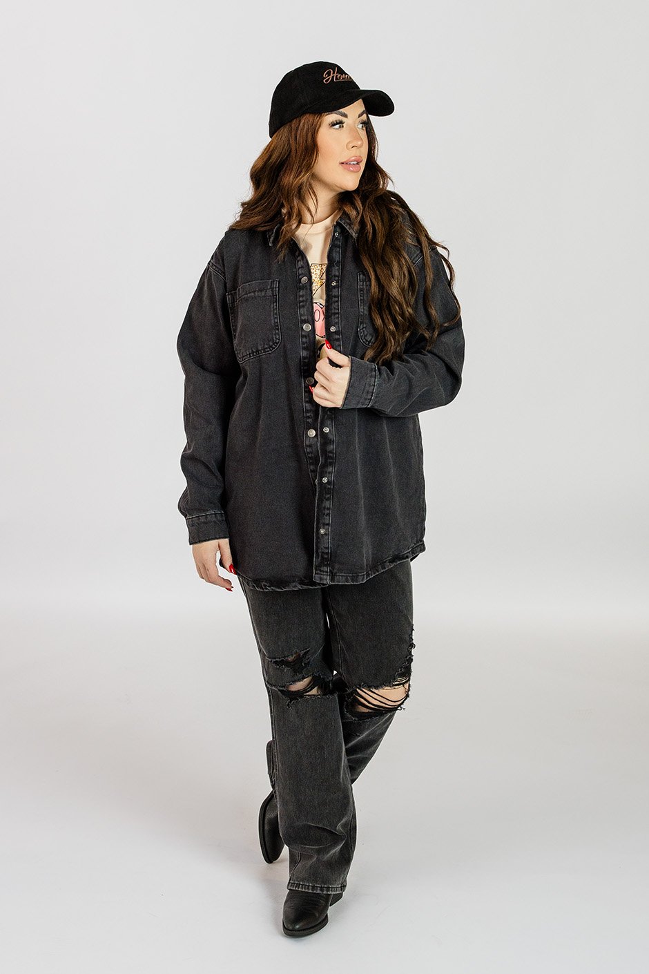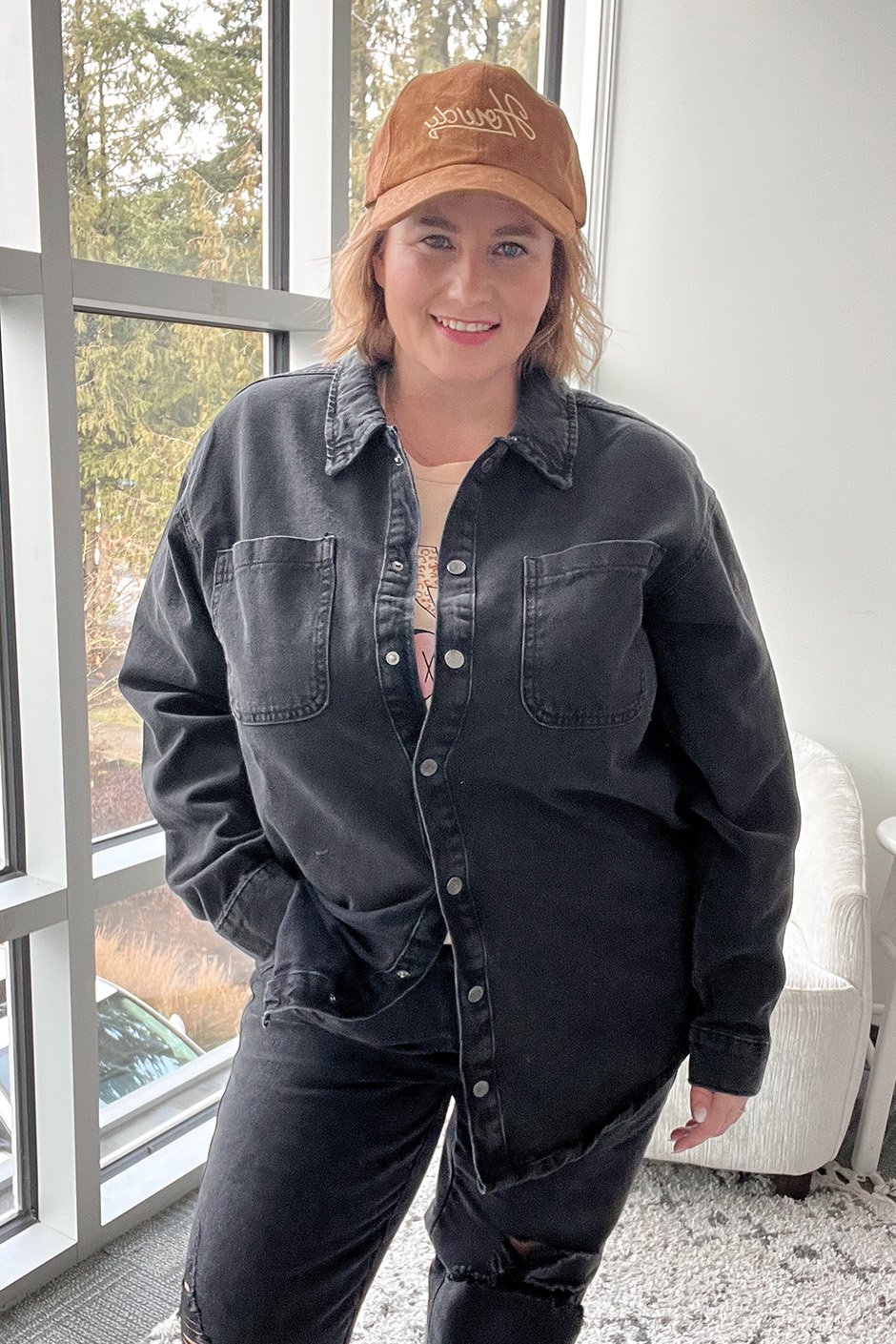 This oversized denim shirt is your new go-to for relaxed, chic style! The snap buttons make it super easy, while the roomy fit offers all-day comfort and versatility. Whether you're layering it over a tee or wearing it solo, it’s perfect for adding a cool, effortless vibe to any outfit. My preferred fit for this kind of shirt is a little oversized and that's exactly how I found it to fit in my true size L.