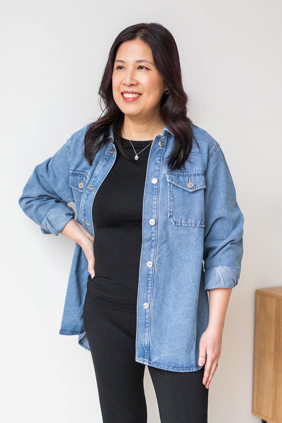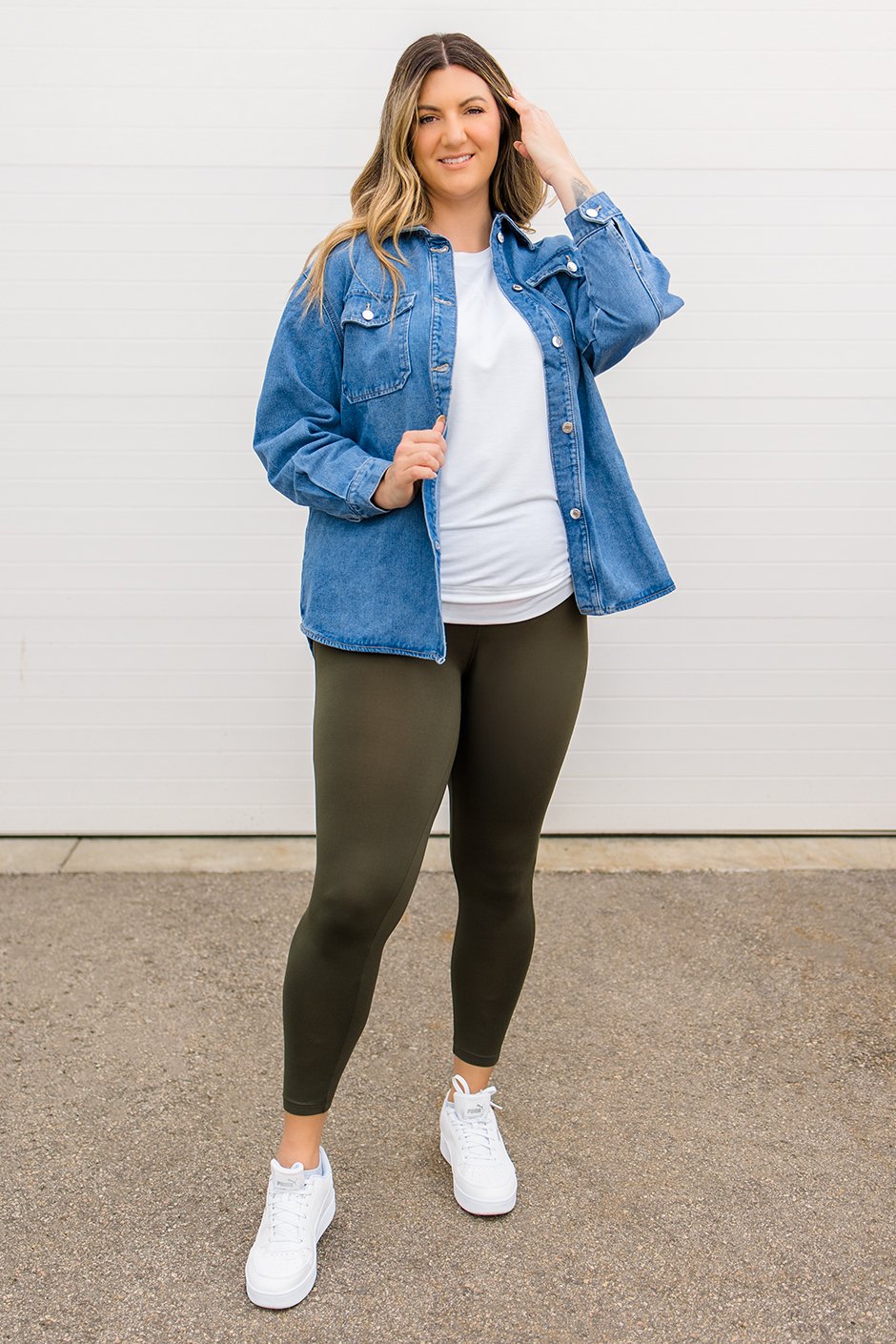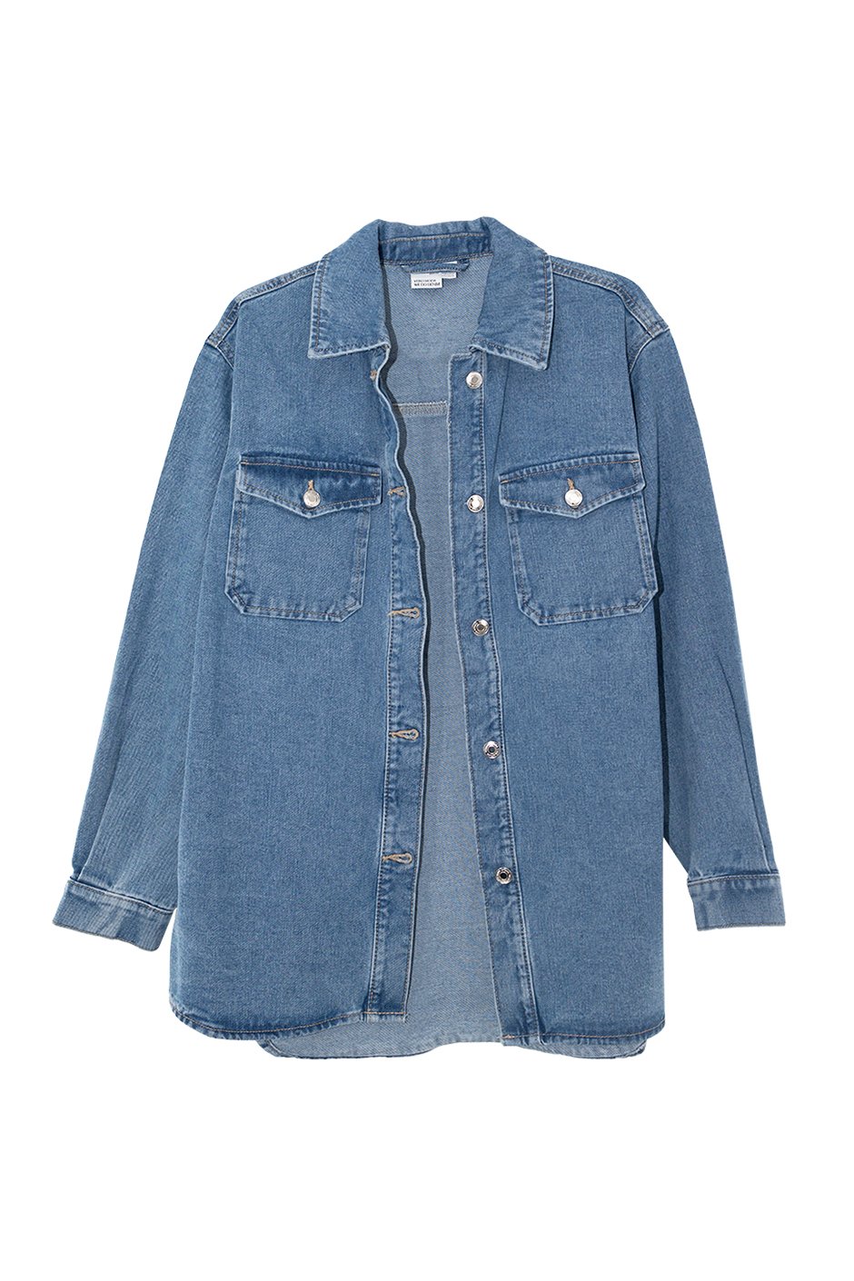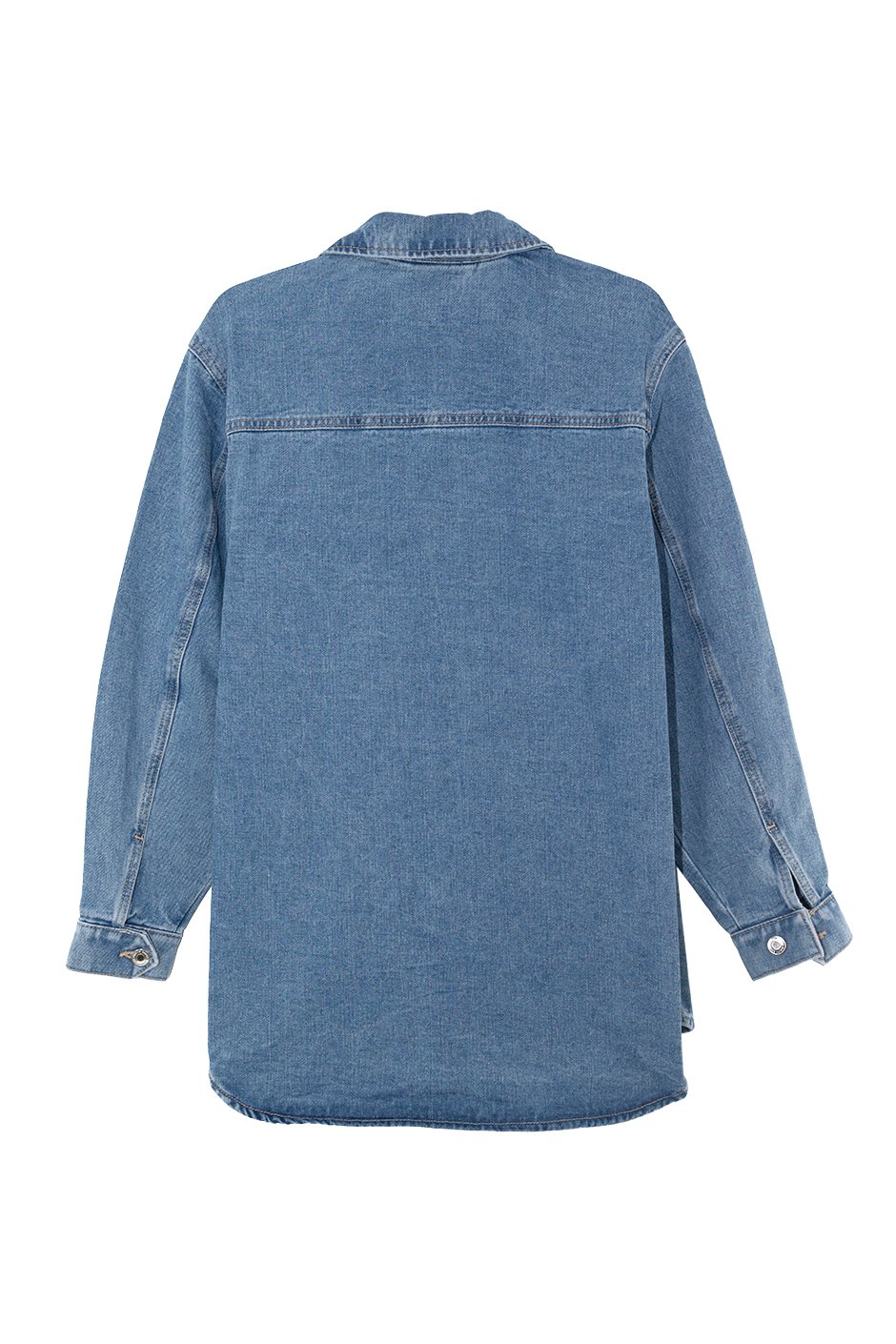This oversized denim shirt is a total wardrobe staple! The relaxed fit makes it super comfy and perfect for layering over pretty much anything. The button-up design and two chest pockets add some classic touches while keeping it stylish. You can dress it up with some high-waisted jeans or keep it casual with leggings. It’s the kind of piece you can throw on for any occasion and still look effortlessly cool. I'm wearing my usual size M and loved the fit.