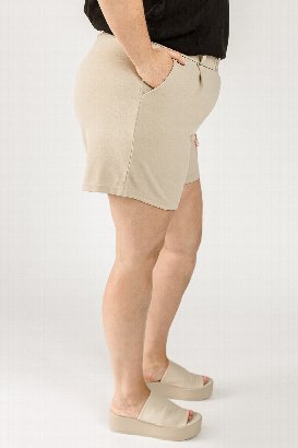 These are incredible! I loved them on the rack and more the second I put them on! Very soft dress pant material that feels like loungewear. The fit is just right, not too tight or too loose, and the button detail adds a touch of sophistication. I'm wearing my true size small. I can create an endless mix of casual and dressy looks with this short! Very excited about this one.