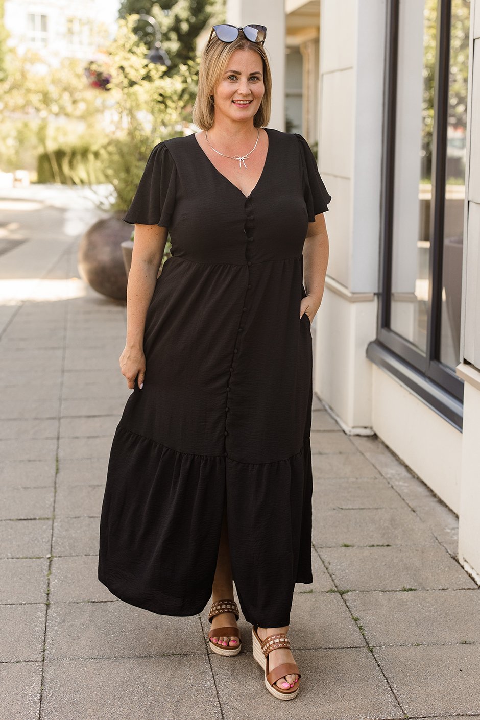 Tiers of Joy dress, a perfect blend of effortless style and functionality. Crafted with multiple tiers for a flowing silhouette, this dress is both flattering and comfortable. Perfect for any occasion, whether it's a relaxed day out or a special event, it also features two convenient pockets for added practicality.