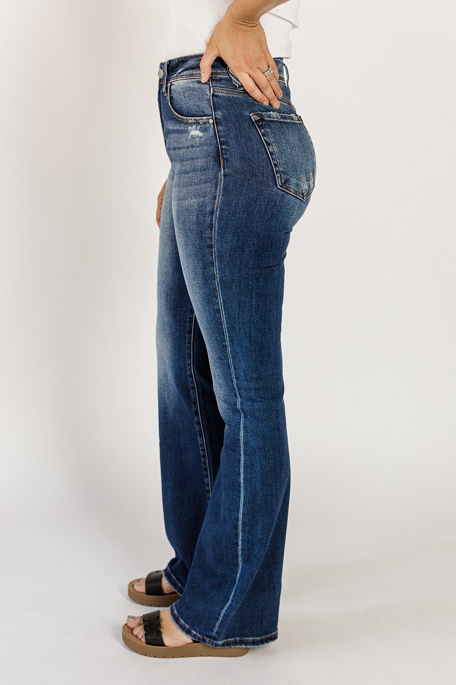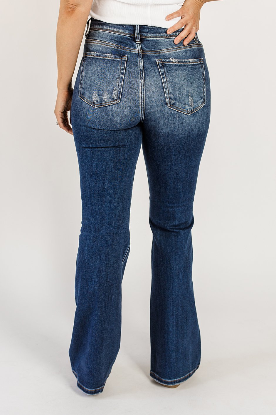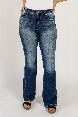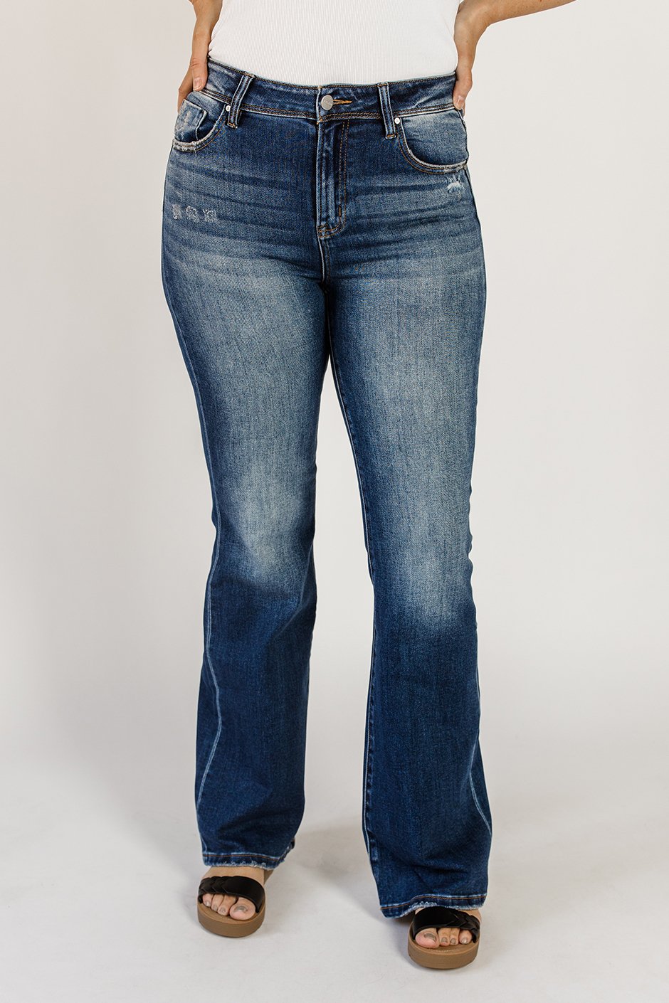 Meet our Hillary High Rise Denim! Featuring a flattering high-rise fit and classic bootcut silhouette, these jeans are crafted from premium denim for a sleek, versatile look that complements any wardrobe.