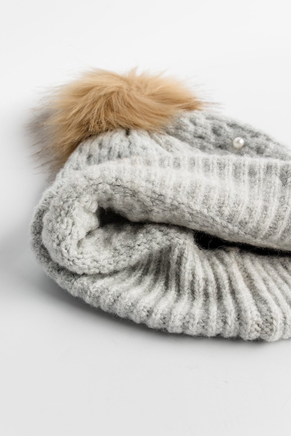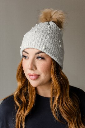 Stay cozy and stylish with this adorable toque featuring a fluffy faux fur pom-pom on top and shimmering pearl accents all around. Perfect for chilly days or festive outings, this beanie adds a fun touch of glam to any outfit while keeping you snug and warm!
