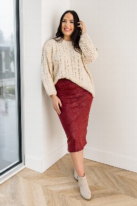I tried this on at the presale, and I instantly fell in love, this cable knit sweater is fantastic! It’s soft, warm, and incredibly cozy, perfect for chilly days. The classic cable knit design adds a timeless touch of style, and the fit is comfortable without being too heavy. It’s versatile enough to dress up or down. It’s for sure going to become one of my favorite sweaters! I find this fits a bit on the roomier side. For my perfect fit, I will order the large.